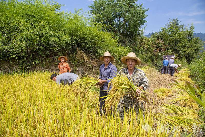 得益于风调雨顺和精心管护,今年甘坪村水稻品质优良、产量喜人。村民分工协作,传统劳作场景里,每一粒稻谷都凝聚着对土地的深情与对生活的热爱。