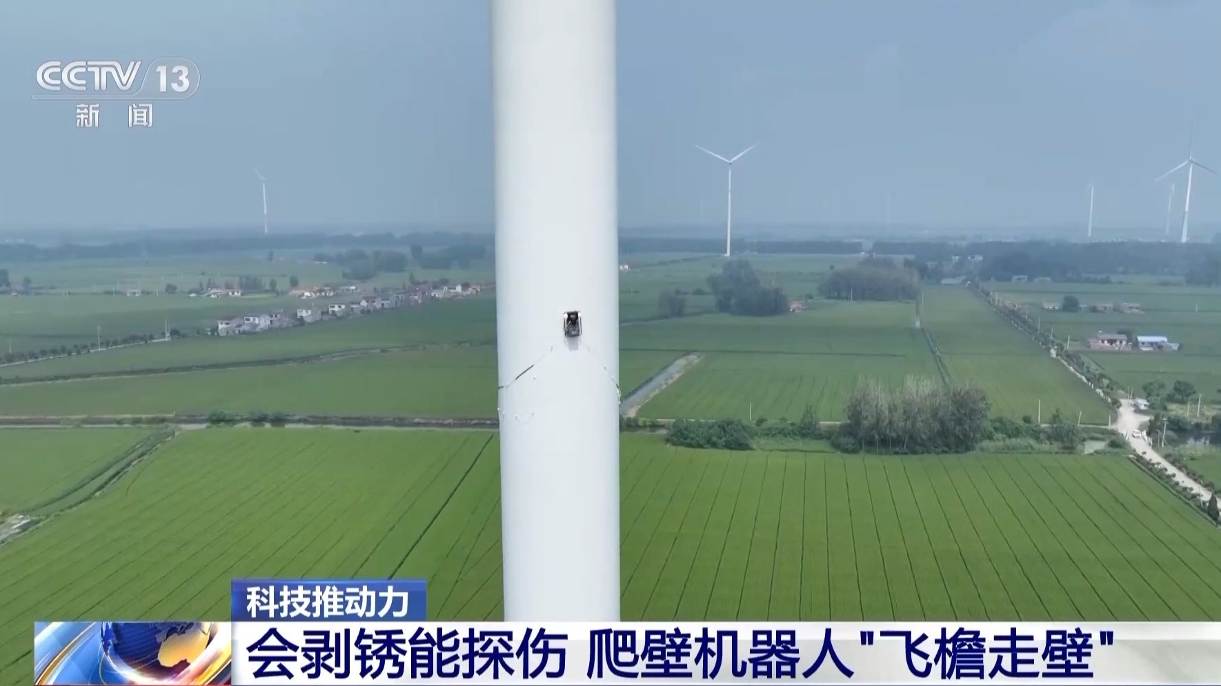 总台央视记者 古峻岭:它的定位精确到厘米级,而且它可以全天候24小时作业,风电机组无需停机,叶片正常转动的情况下,它也能够展开作业。即便是十几级的大风也不影响它工作。一个上百米高的风电塔筒,不到两个小时就可以检测完毕,并一键生成检测报告。不仅检测更加全面,效率更高,最重要的是,免除了人工用绳索高空垂吊作业的危险。