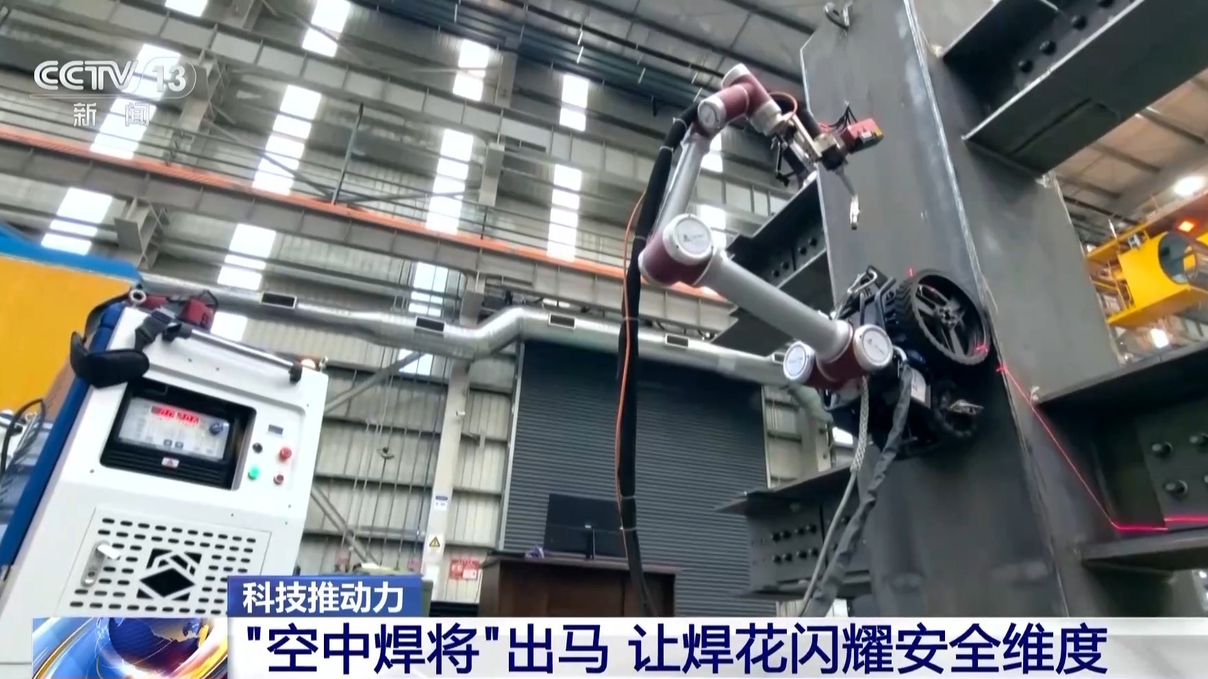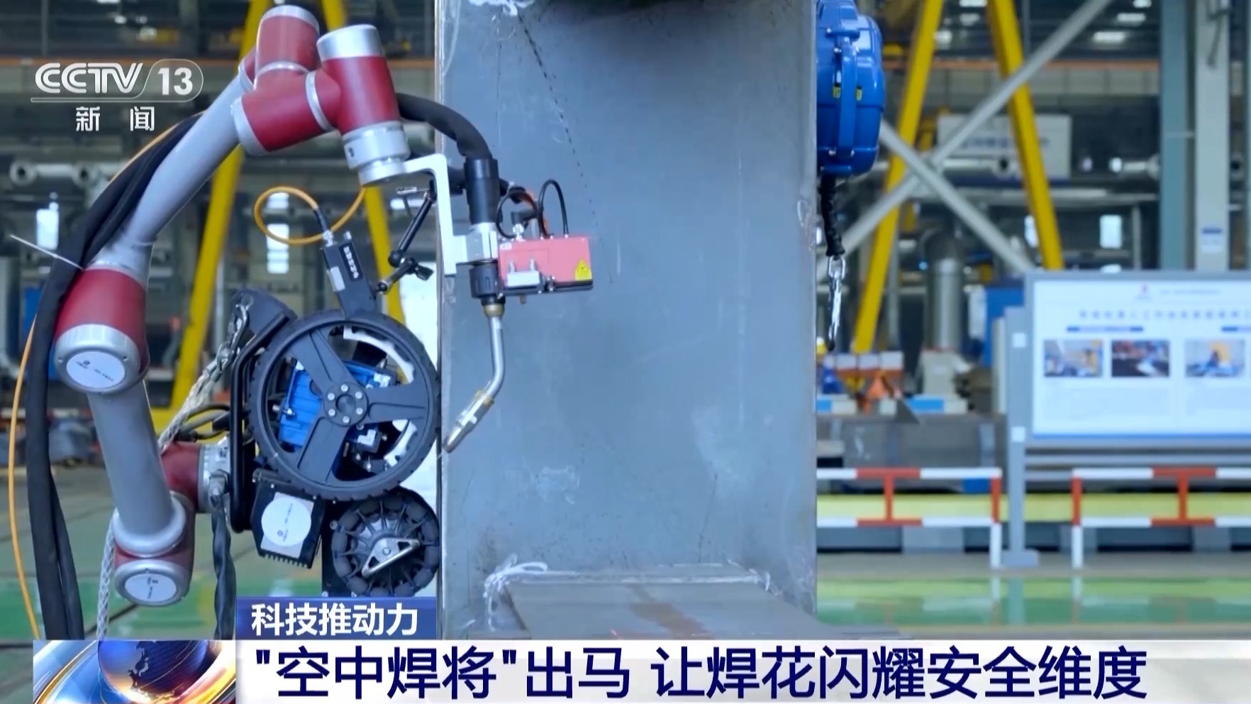总台央视记者 古峻岭:除了高空,它还可以深入桥梁、隧道等狭小空间,完成人工难以实施作业的焊接难题。有了它,高危场景的焊接作业不再让人提心吊胆,工人们多了安心。安全有了,效率也更高了,这就是智能工业机器人带来的科技推动力。