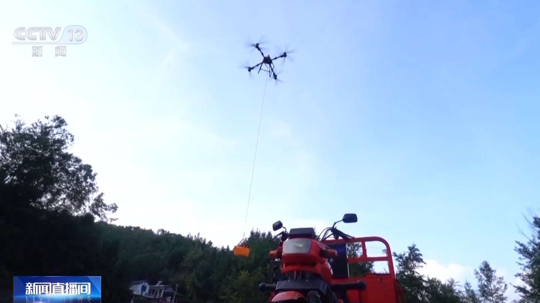 总台央视记者 古峻岭:在四川绵阳北川羌族自治县桂溪镇宝城村,这里海拔是1200米。这个果园距离山下有600米,以往山上的水果想要运下山,就只能靠农用三轮车经过四、五十分钟的时间运下山。现在,采用重载无人机点对点的直接调运下山,时间只需要10分钟,仅相当于原来的四分之一。现在采用无人机运输,使运输过程的安全性大幅提升。
