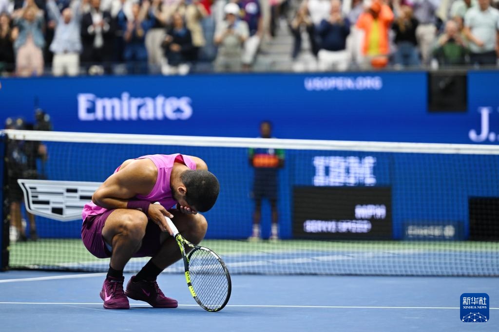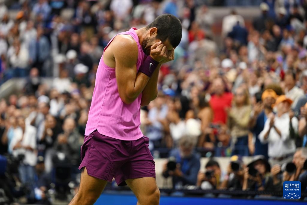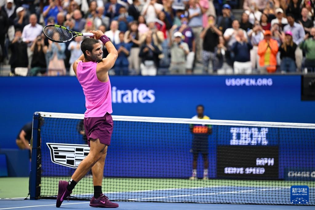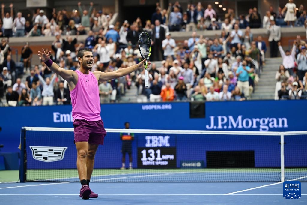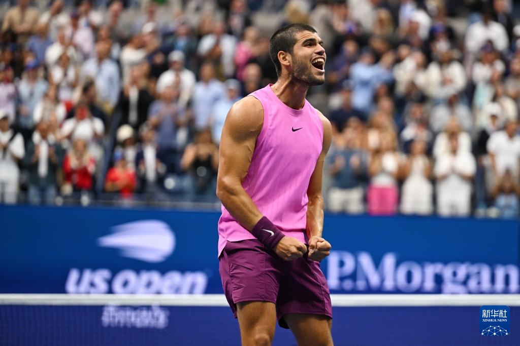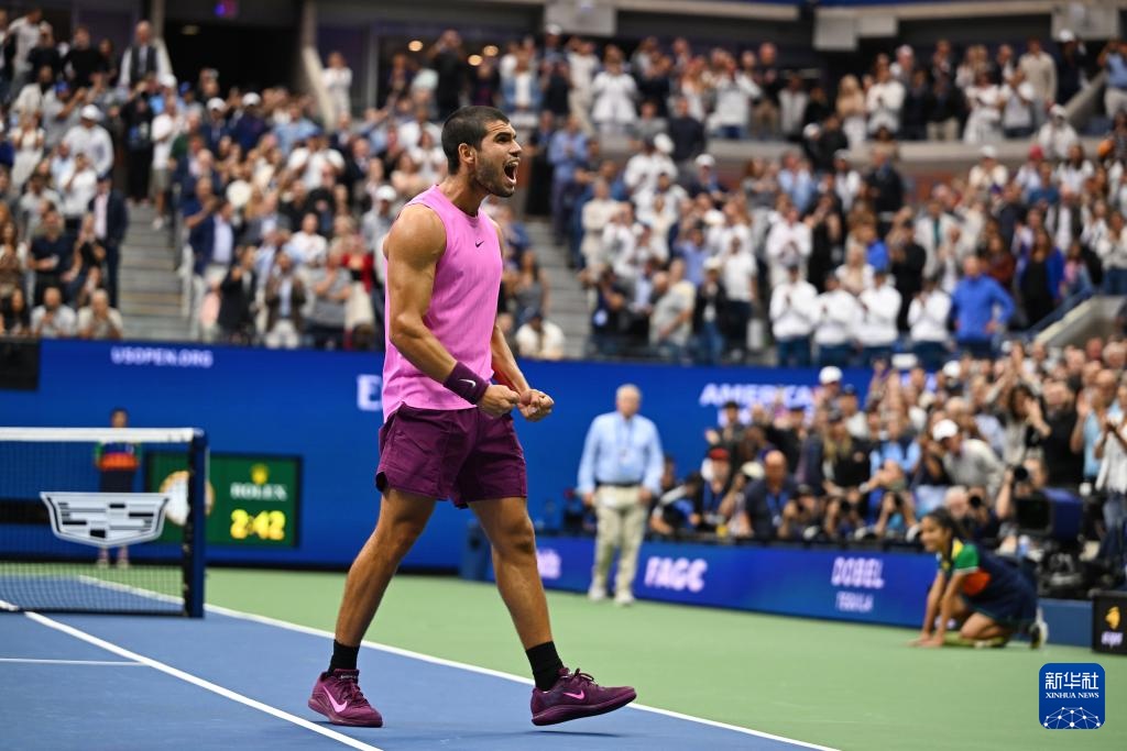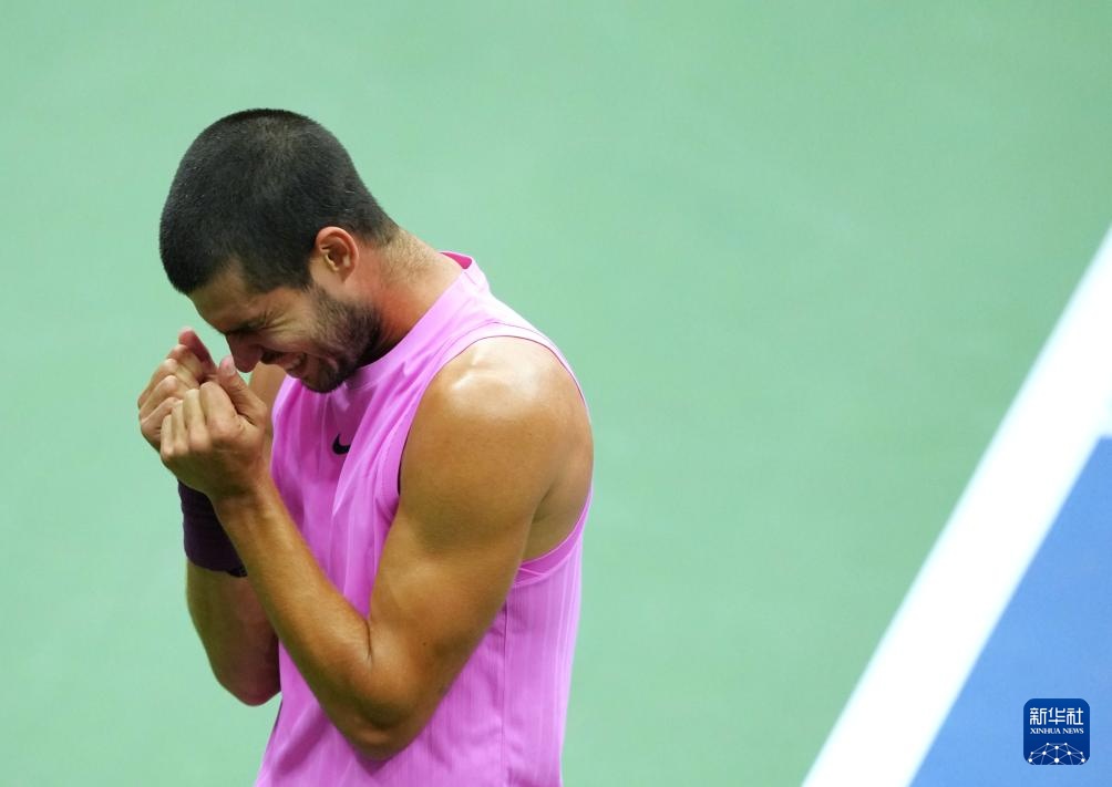 9月7日,阿尔卡拉斯庆祝拿到赛点。