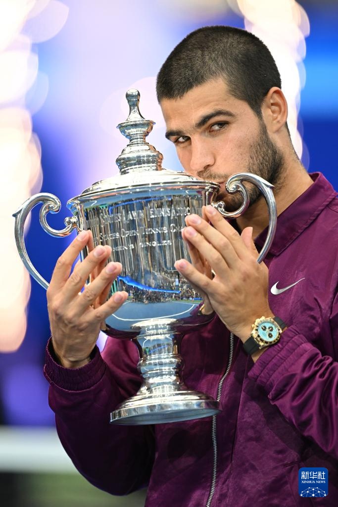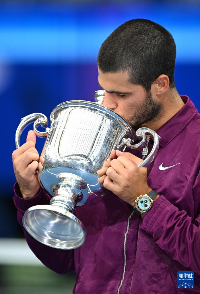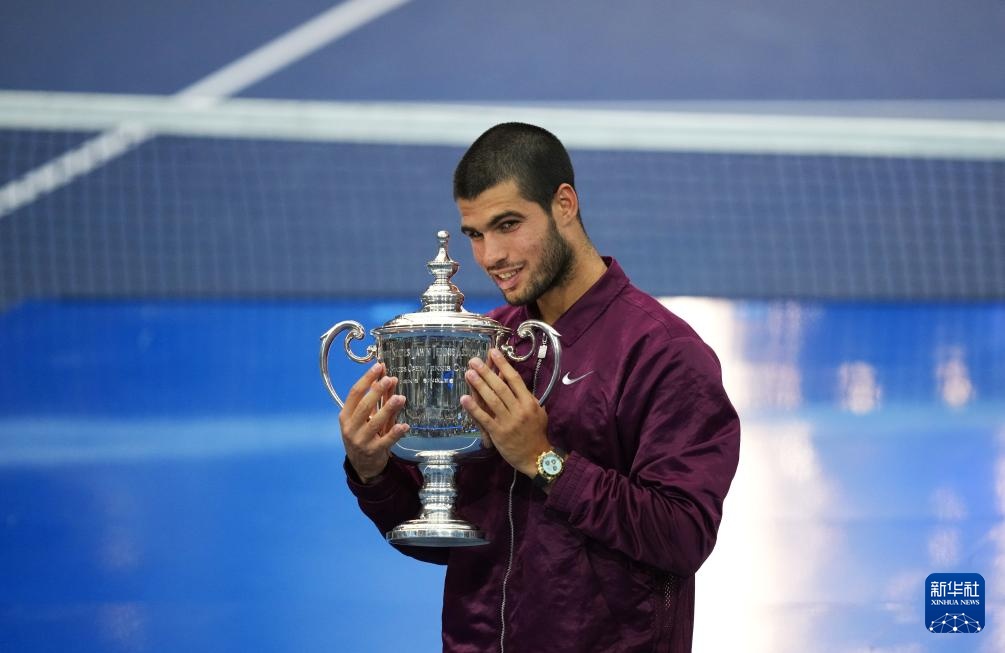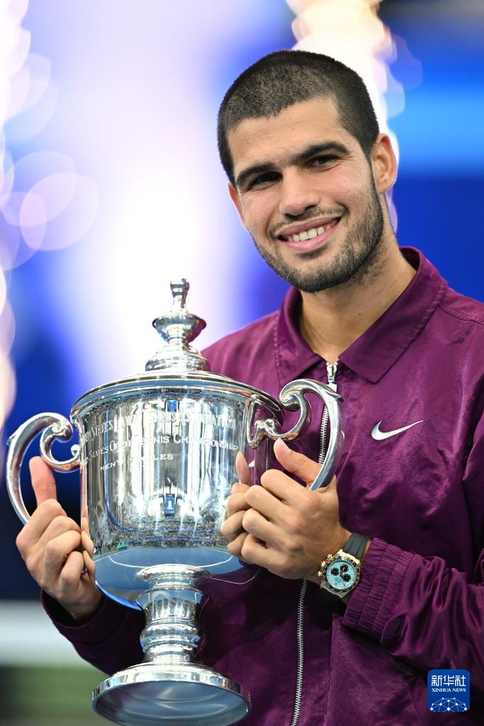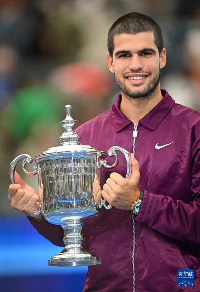 9月7日,阿尔卡拉斯在颁奖仪式上。