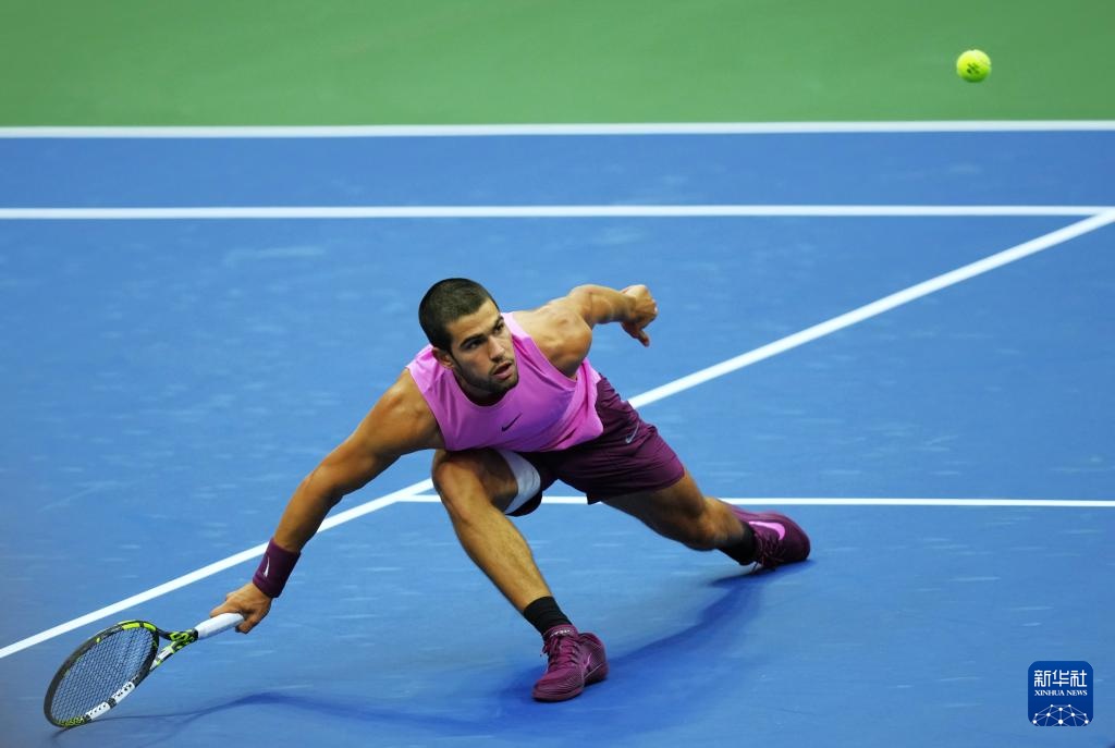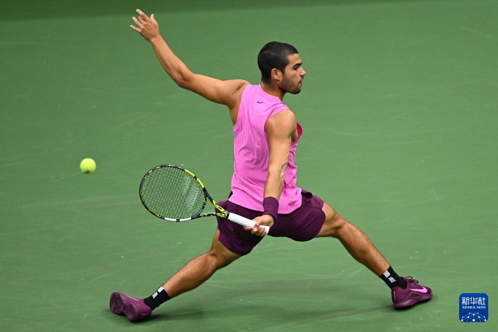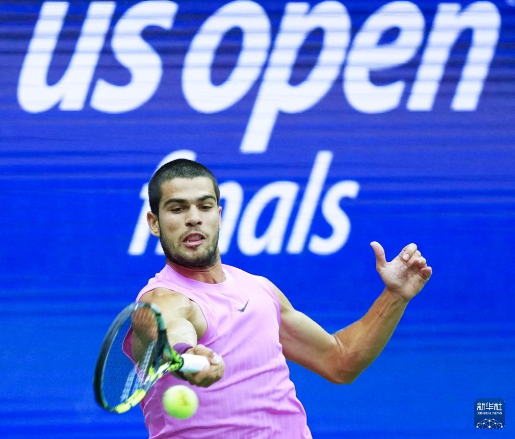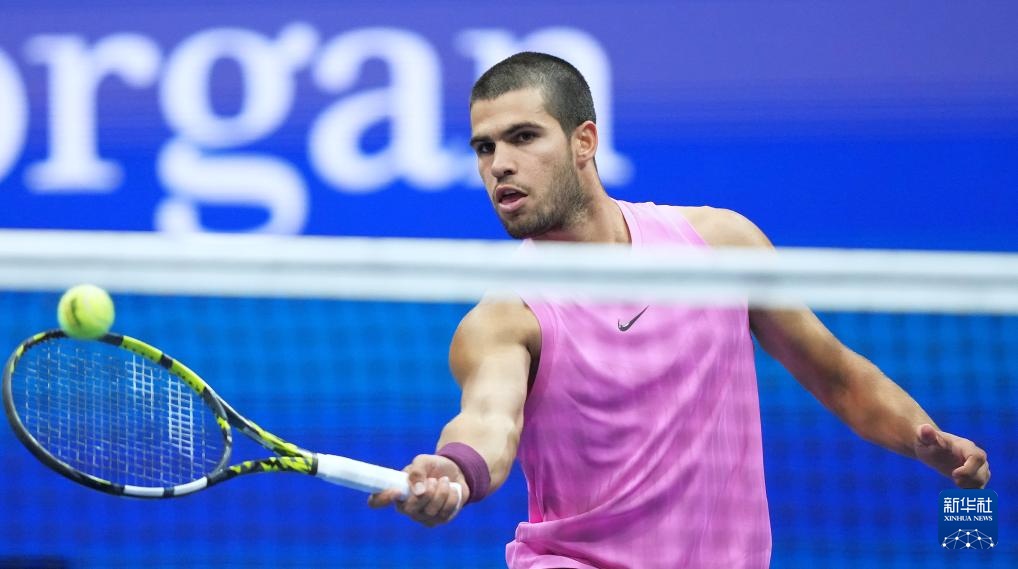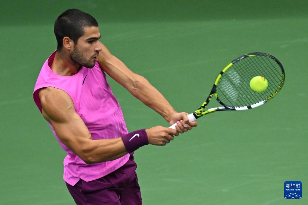 9月7日,阿尔卡拉斯在比赛中回球。