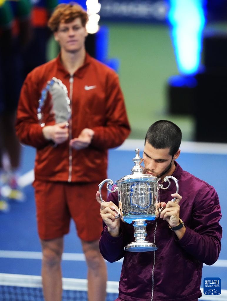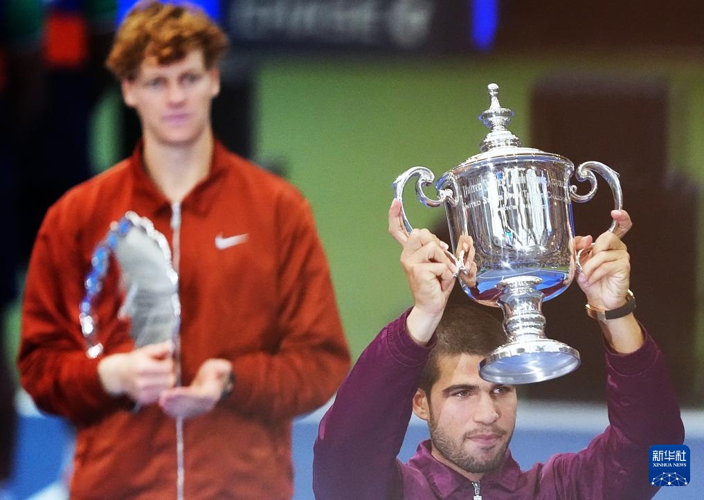 9月7日,阿尔卡拉斯(右)和辛纳在颁奖仪式上。