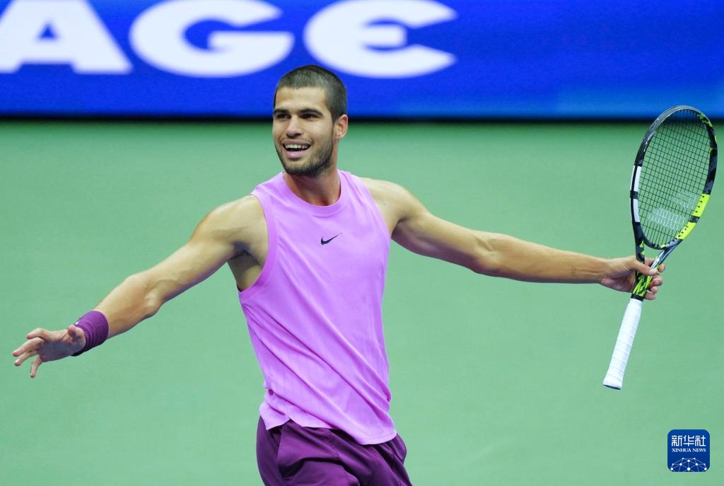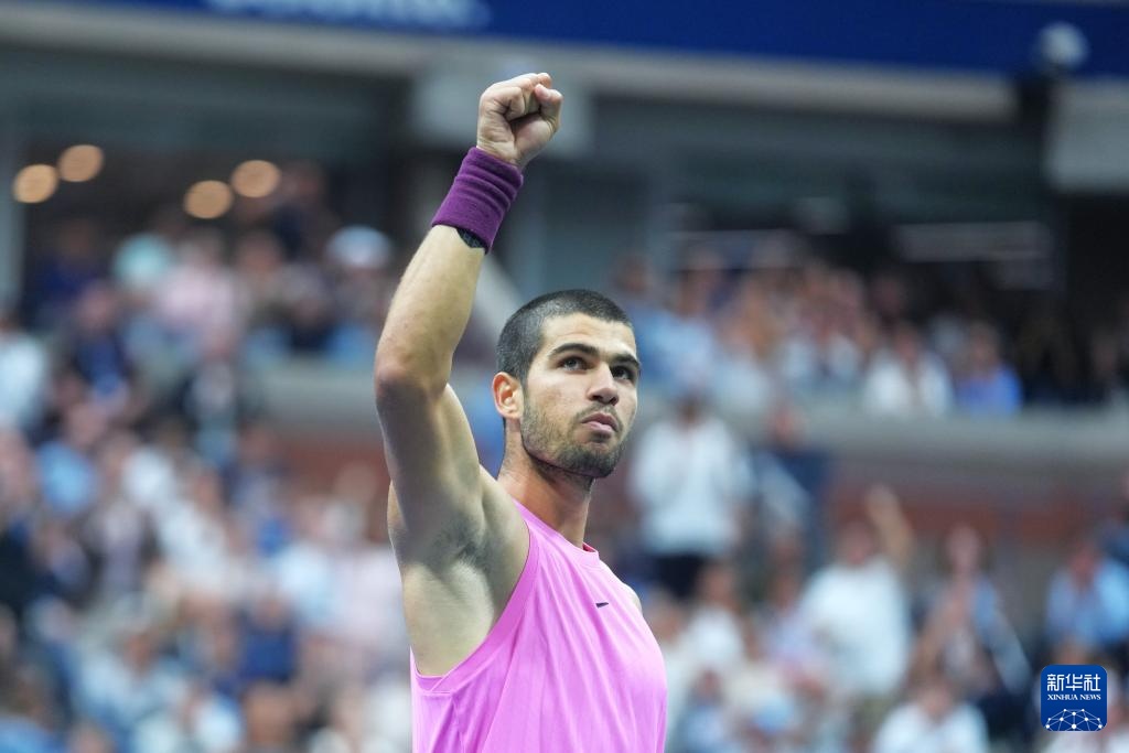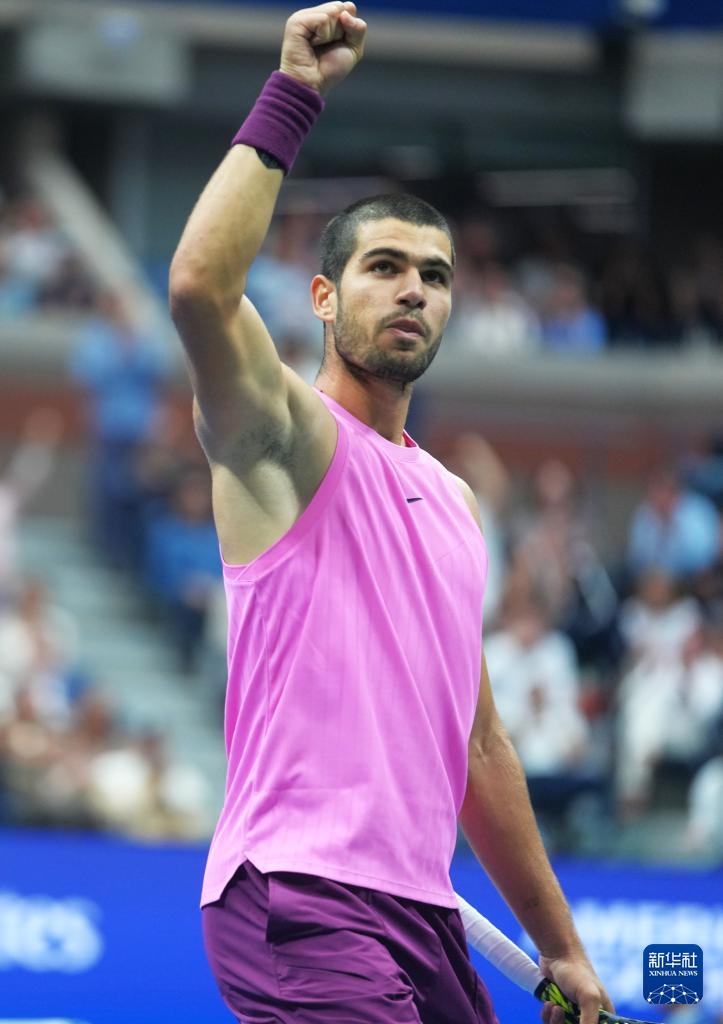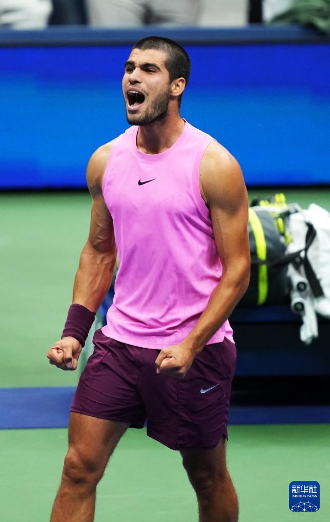 9月7日,阿尔卡拉斯庆祝比赛胜利。