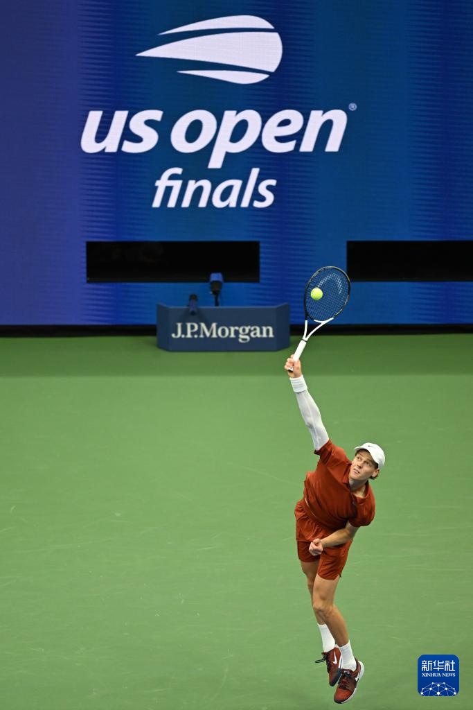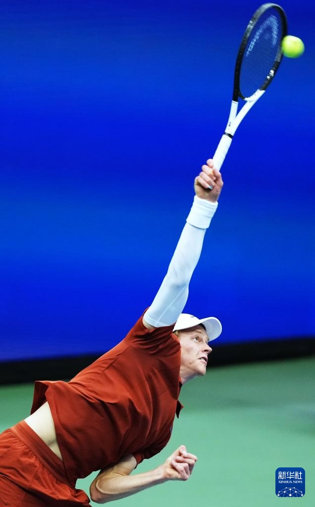 9月7日,辛纳在比赛中发球。