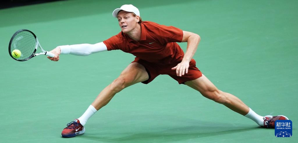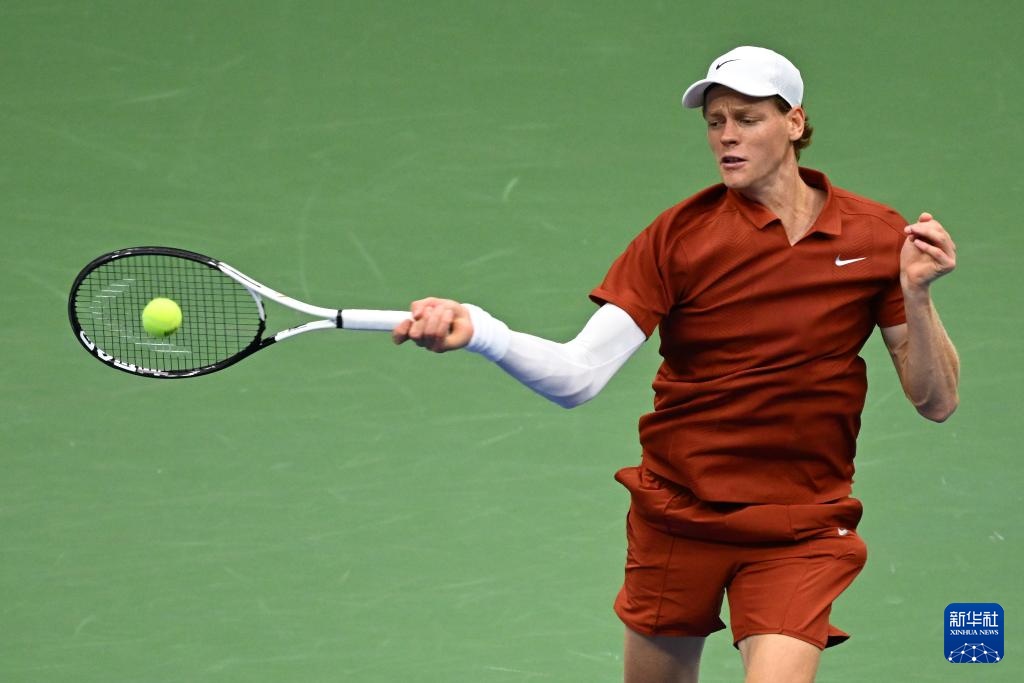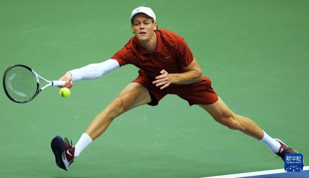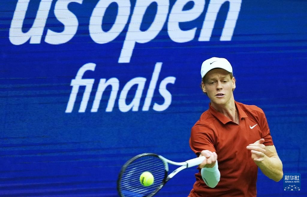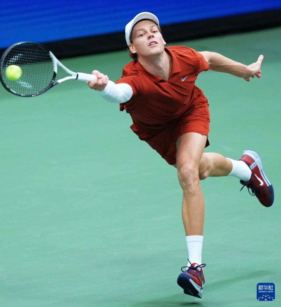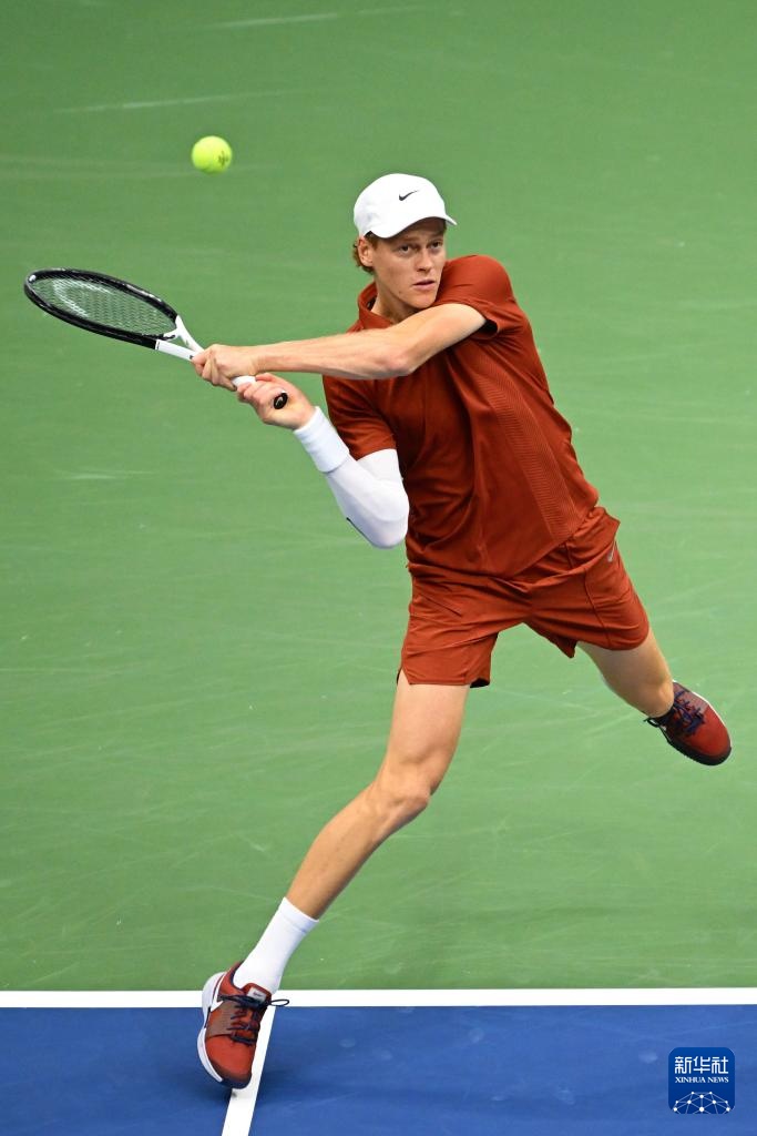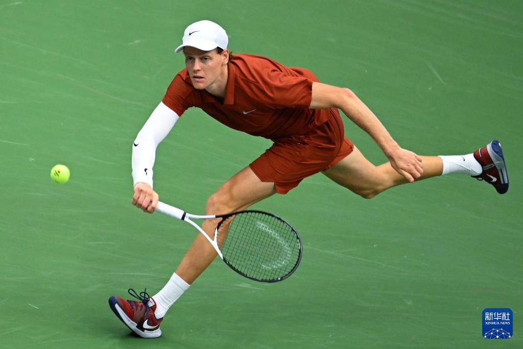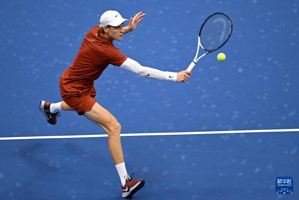 9月7日,辛纳在比赛中回球。