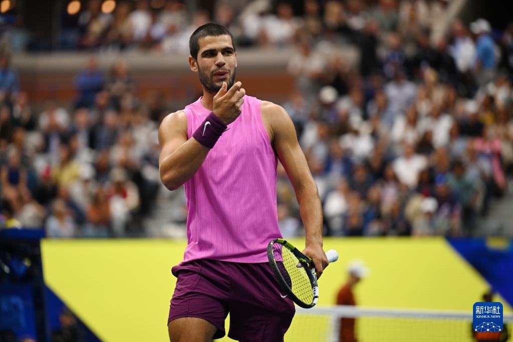 9月7日,阿尔卡拉斯在比赛后庆祝胜利。