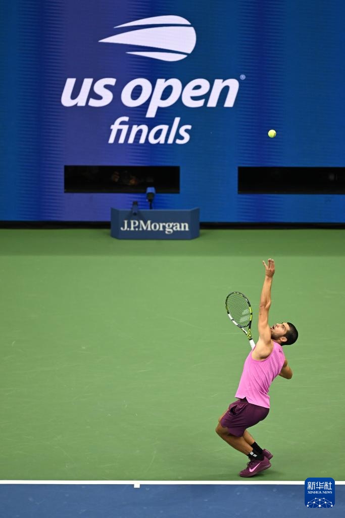 9月7日,阿尔卡拉斯在比赛中发球。