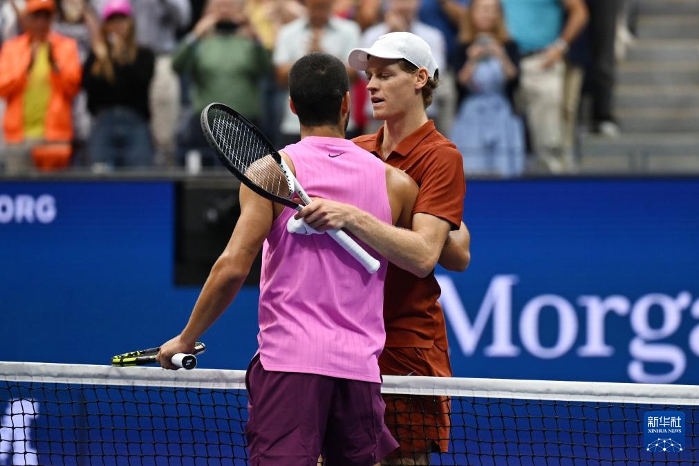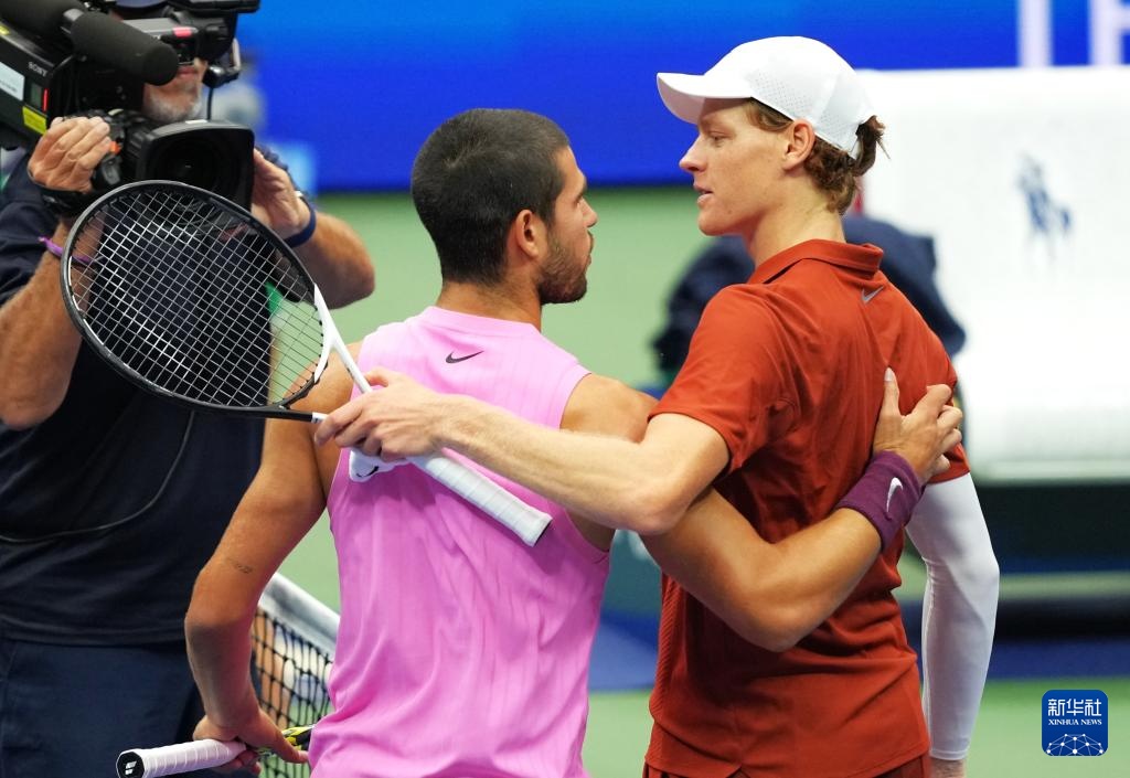 9月7日,阿尔卡拉斯(左)和辛纳在比赛后拥抱致意。