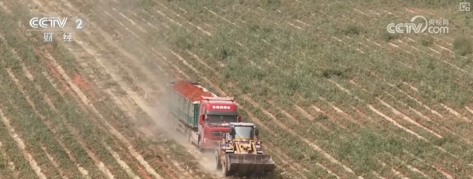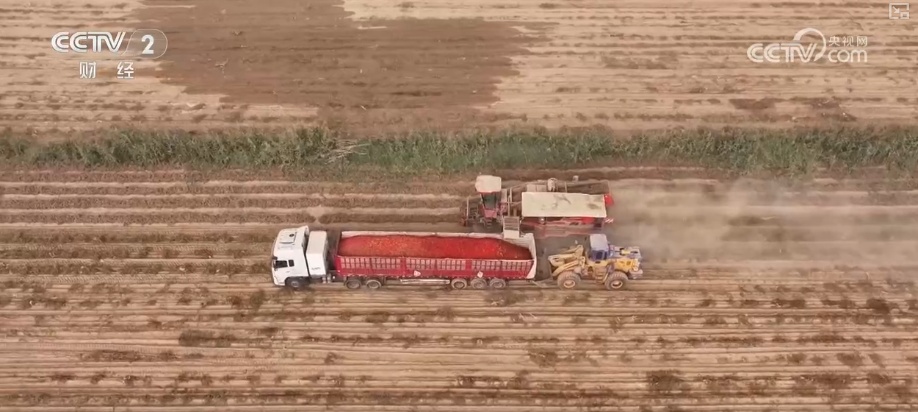 加工番茄是用来制作番茄酱、番茄汁等产品的专用作物。这两天,新疆昆玉市上千亩加工番茄迎来丰收。2025年,订单农业模式让种植户们尝到了甜头。
