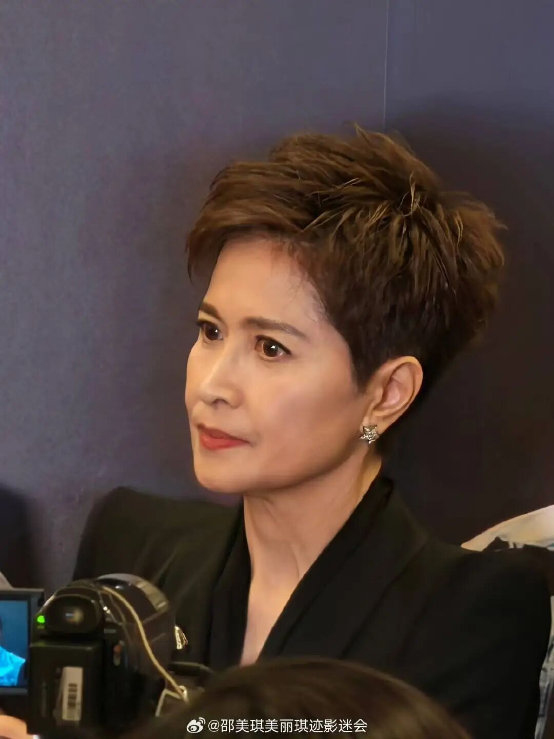今年已经60岁的她仍留着标志性短发,身穿帅气黑西装,颜值依然能打。