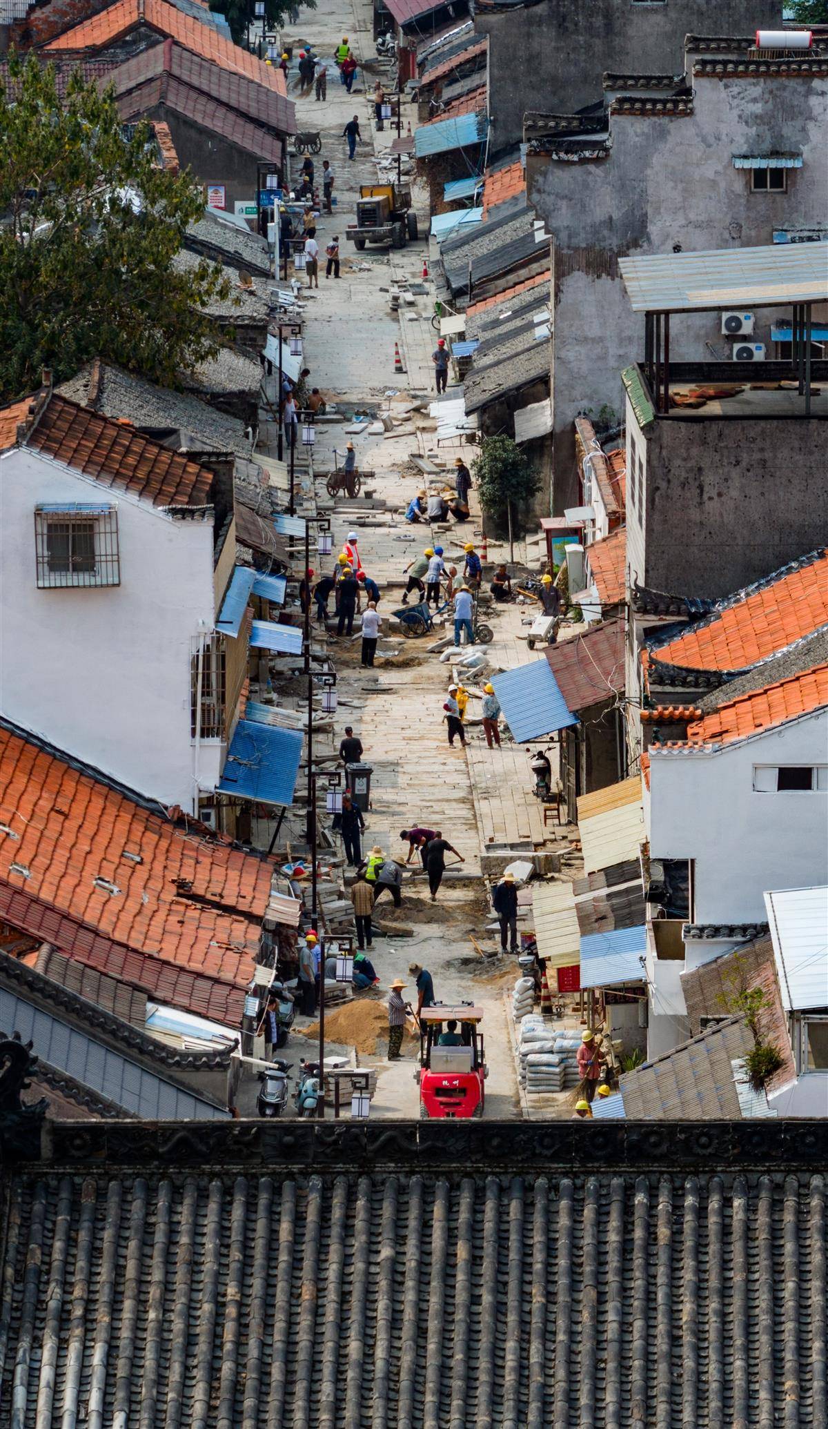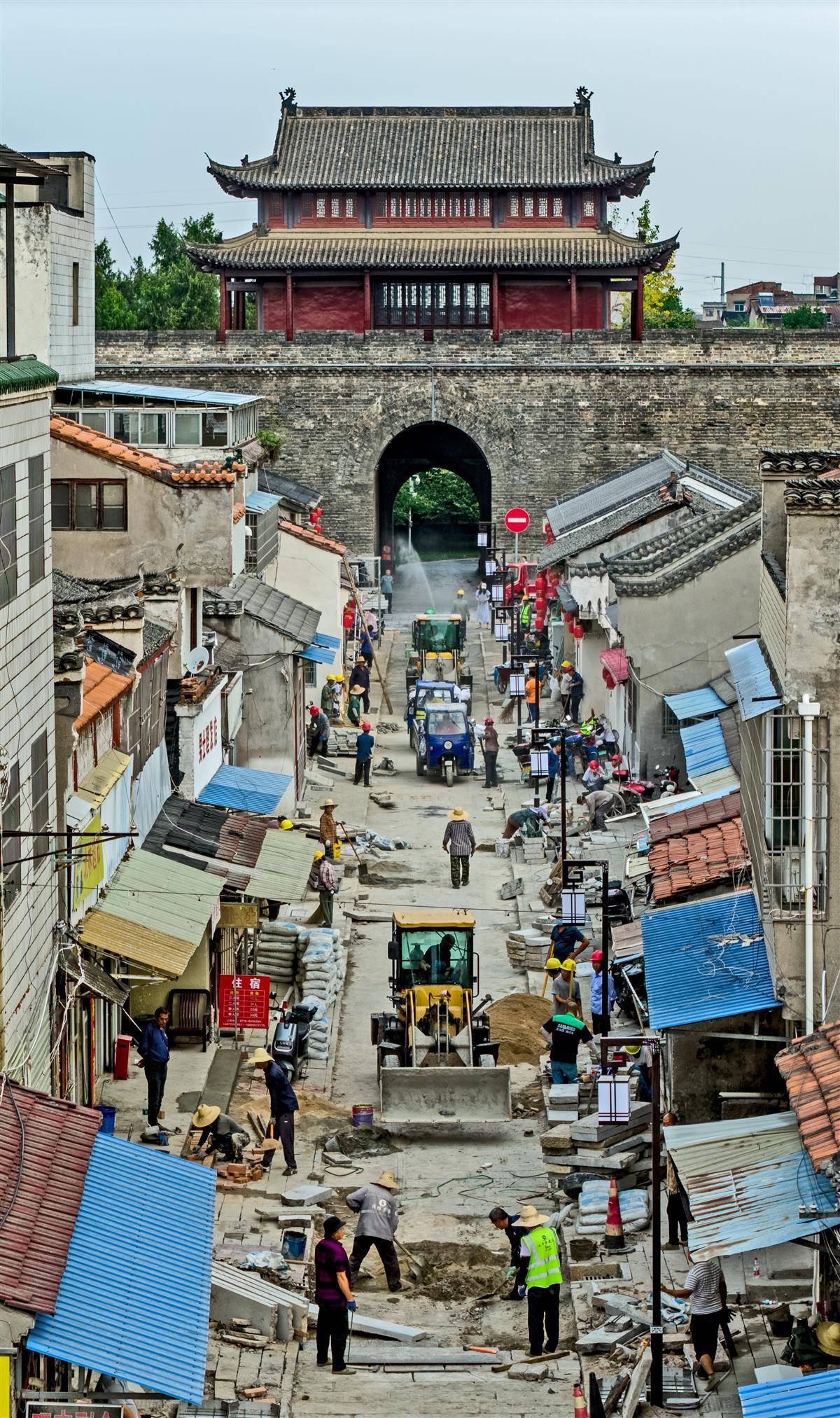 9月8日,荆州古城三义街片区施工现场机器轰鸣、车辆穿梭,施工人员正紧锣密鼓推进历史文化街区保护利用及基础设施改造工程,为这条承载千年历史记忆的古街开启新篇。