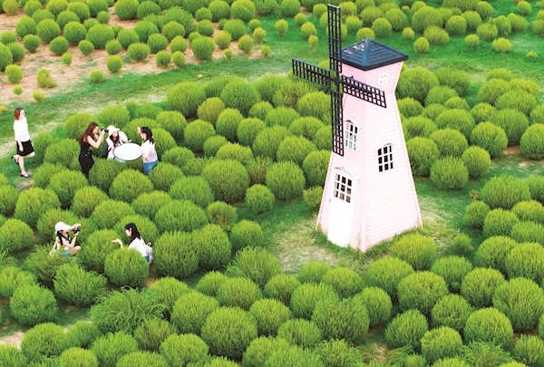 9月7日,武汉马鞍山森林公园,4万余株地肤草披上“绿衣裳”,吸引市民游客打卡游玩。预计9月底到10月初,地肤草将逐渐进入变色期,从青绿转向暖黄、橘红,届时会像打翻的调色盘。