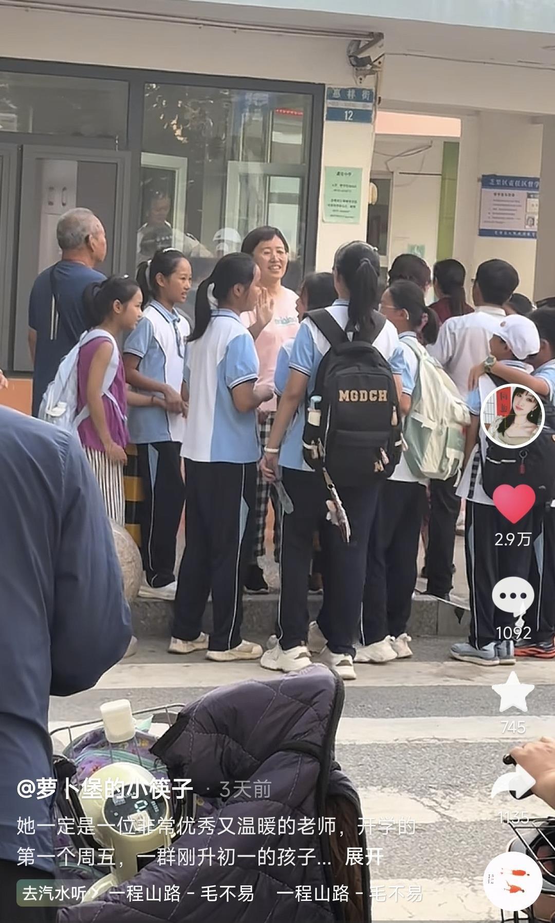近日,有学生家长在山东烟台一小学门口拍下了动人一幕。该家长称,新学期开学第一周的周五放学,一群刚升初一的孩子来到校门口,围在他们小学母校的一位女老师身边。其中一名小男孩看着老师一边哭一边诉说,老师则不停地安抚着这些她曾经呵护过的孩子。该家长表示,看到这个场景,自己也忍不住落泪。在视频评论区,众多网友为这种真挚淳朴的师生情谊点赞,还有网友纷纷回忆起他们曾经的恩师或学生,并分享出那些温情的点滴。