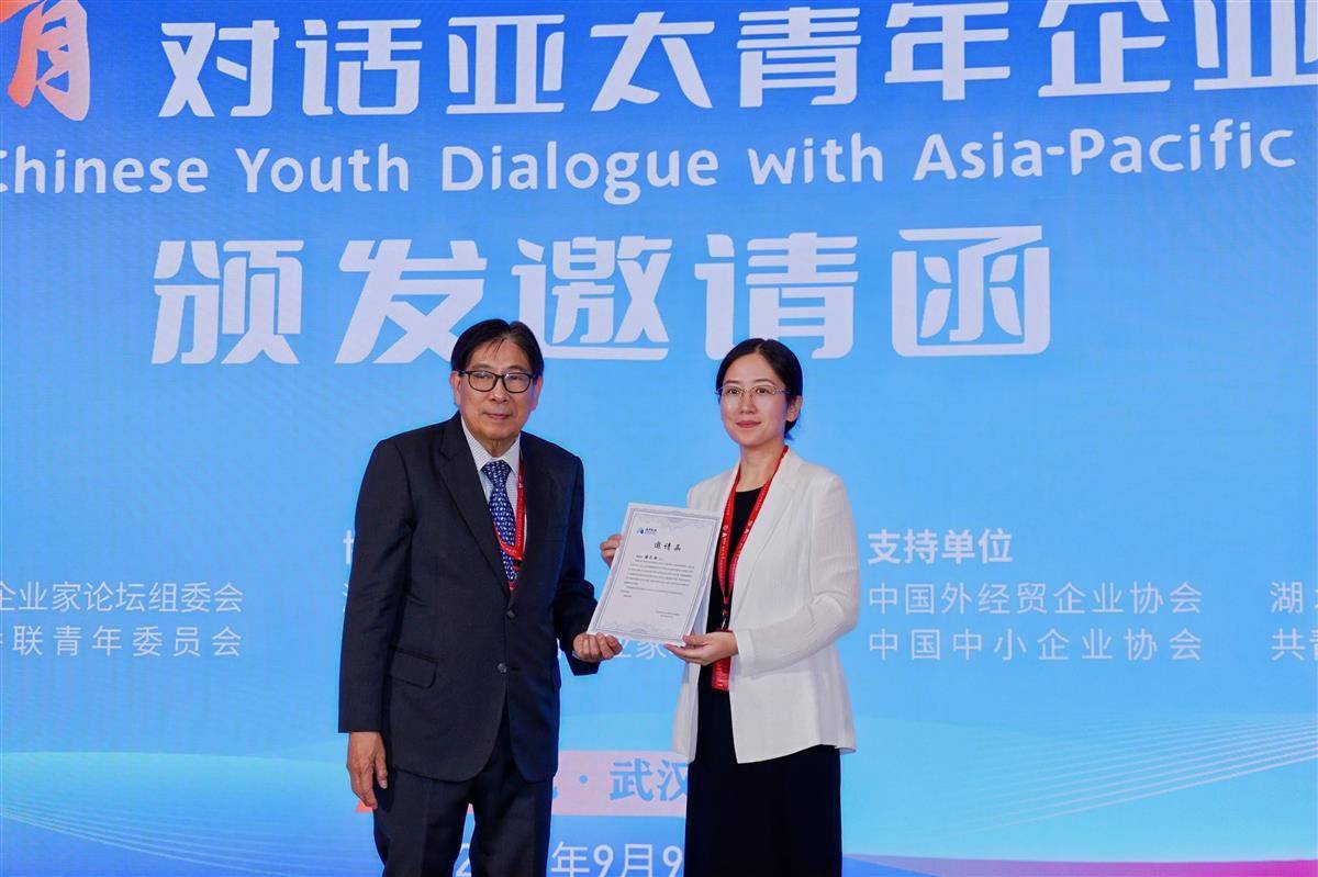 APEC工商咨询理事会秘书长、APEC青年企业家论坛顾问委员会主席安东尼奥·巴西里奥为参加亚太青年企业家论坛的湖北侨青颁发邀请函。(省侨联供图)