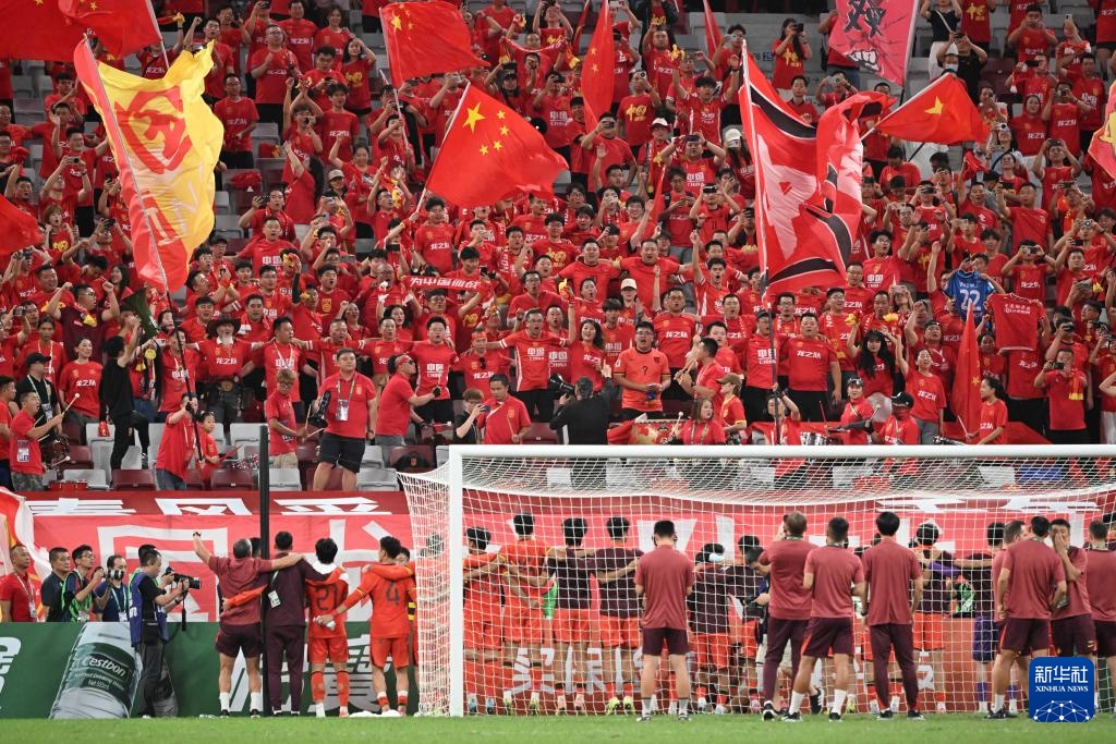 9月9日,中国队球员(左)在赛后向球迷致意。