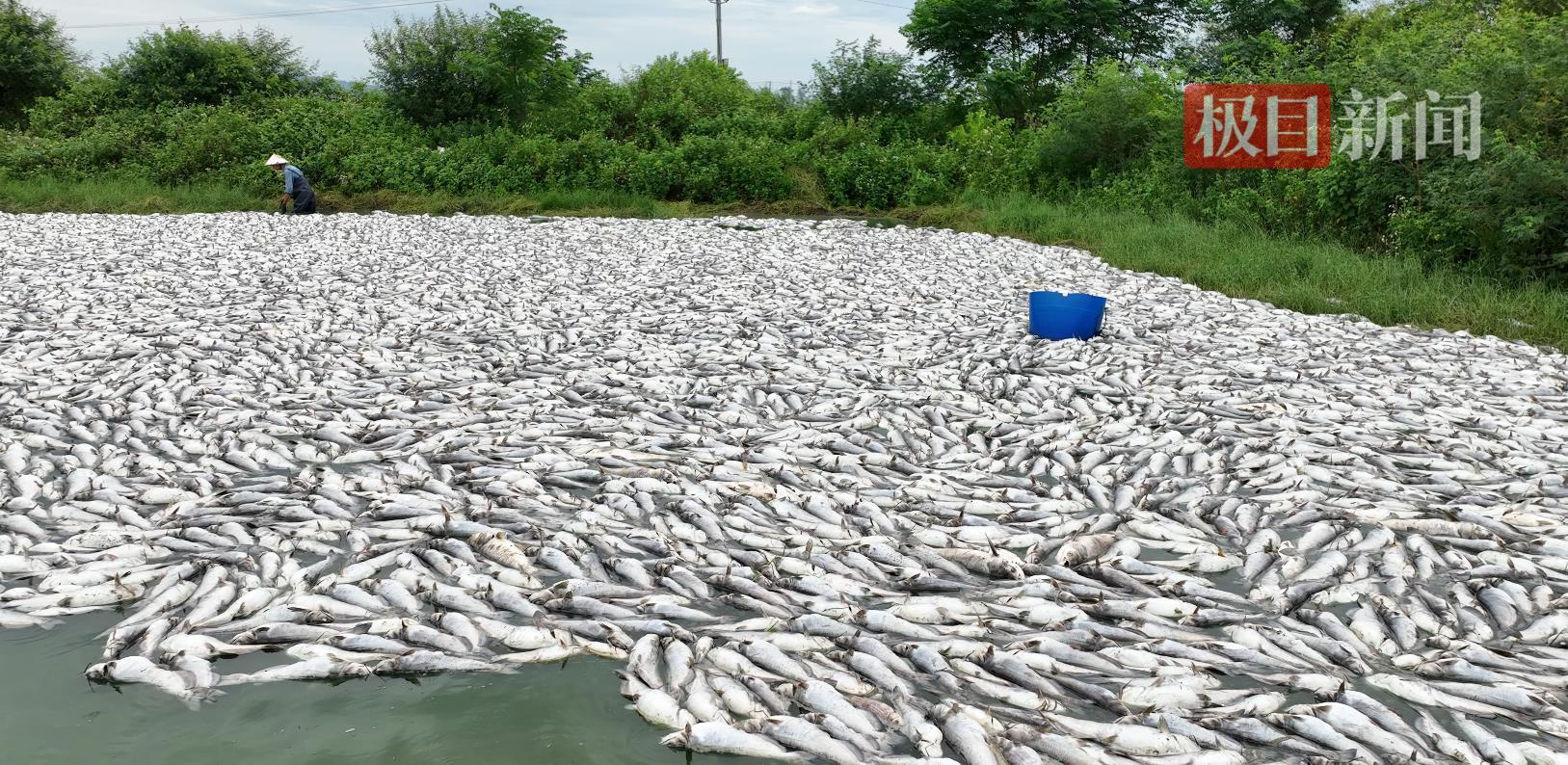 当地一位去过当事鱼塘的居民向记者描述,他9日去看到多个水塘漂浮着大量死鱼,师傅正在打捞,“已经有臭味了”。