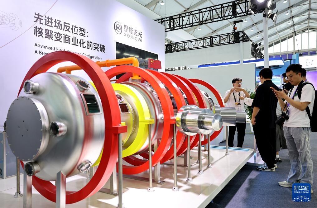 9月10日,参观者在一个先进场反位型装置模型前驻足观看。