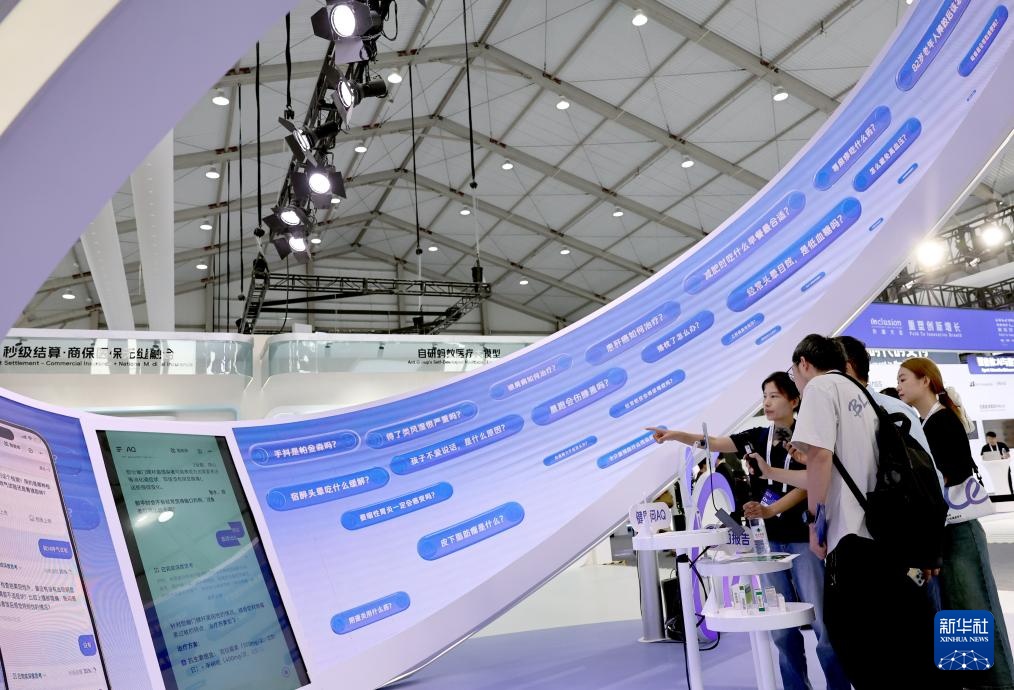 9月10日,工作人员(左)在向参观者介绍AQ健康医生的人工智能产品。