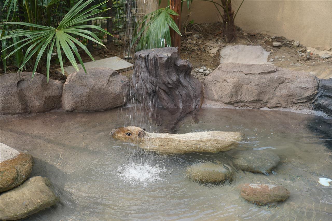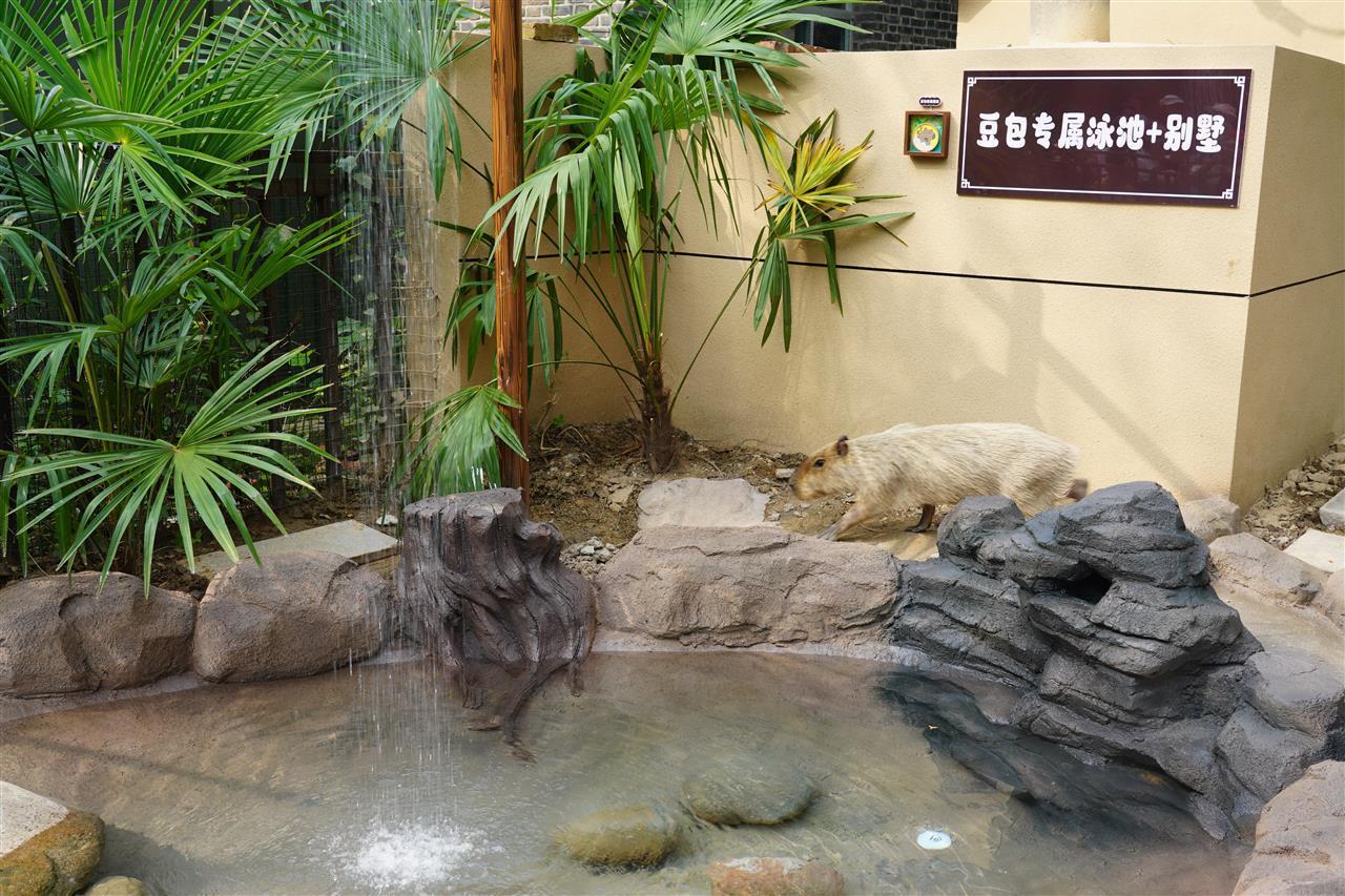 后来,“躲躲”生下4只小水豚,与“霸总”及其子女组成家庭。曾在野外生活两个月的“豆包”与它们共处并不和谐。为了保护“豆包”,也为了给它独立的空间,园方特意为它打造了这座带有泳池和花园的独立新家。