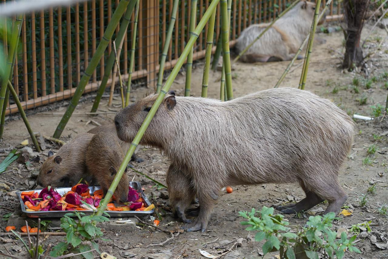 水豚“躲躲”一家
