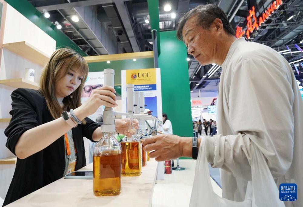 9月10日,参观者在服贸会主题展爱尔兰展台品尝威士忌。