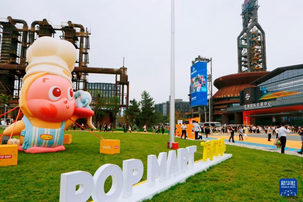 9月10日,观众在服贸会主题展区泡泡玛特展台前参观。
