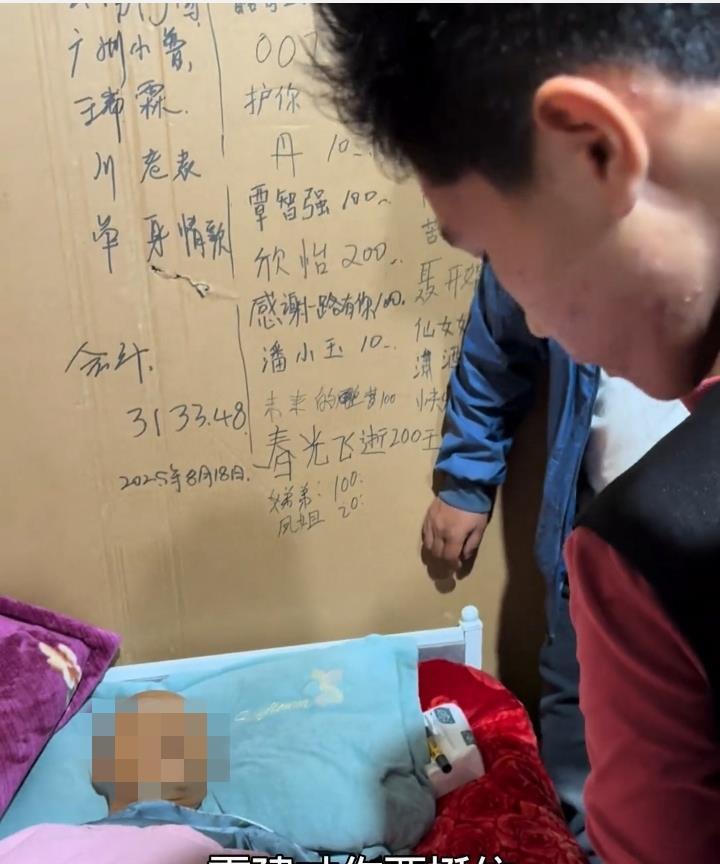 雷氏兄弟的亲友也通过视频,发布了兄弟俩生病的情况以及哥哥去世的消息。视频显示,雷某才临终时躺在床上,床头贴着一块硬纸板,上面写着亲朋好友和爱心人士的捐款情况,单笔捐款大多为几百元。