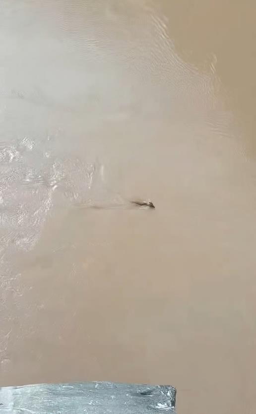 视频显示,有黄色不明生物在虎跳峡水中游,形状不像鱼类,头上有角,身长而直。视频拍摄者惊呼:“是龙吗?”