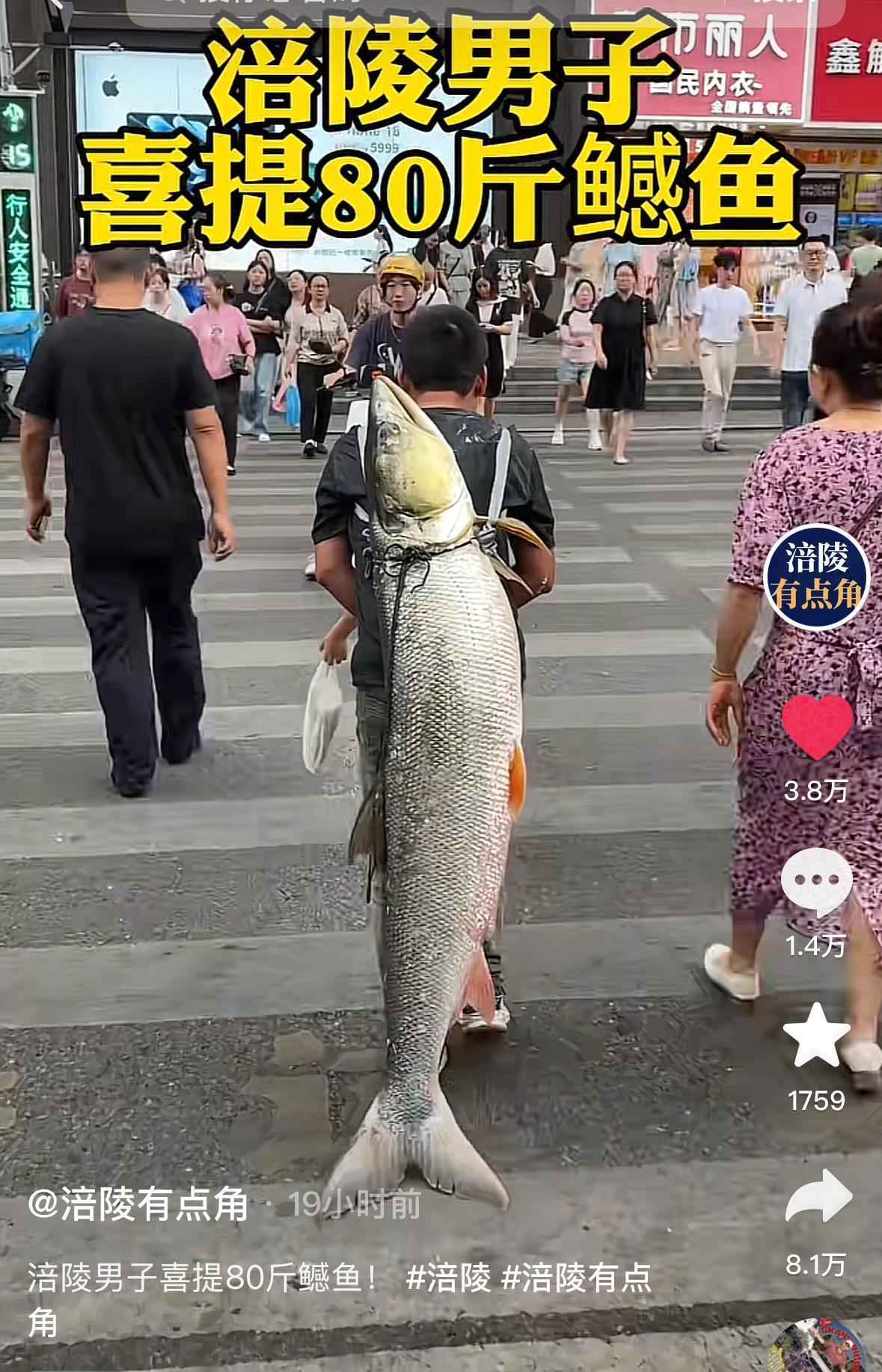 9月10日,重庆市涪陵区一名男子背着79斤鱼在闹市行走的视频引发关注。