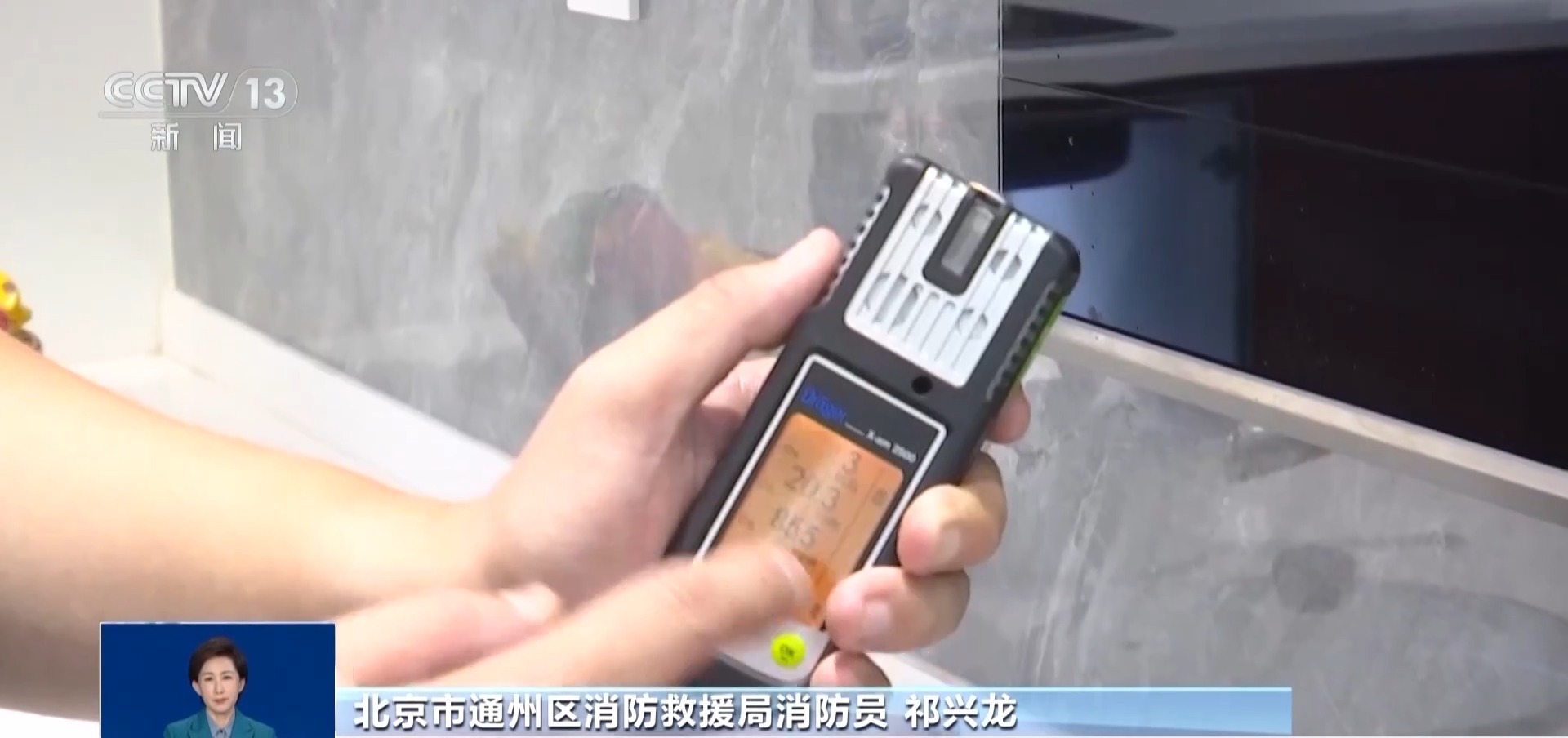 消防员在燃气灶上加装聚能环后烧水,用气体检测仪进行一氧化碳浓度检测。