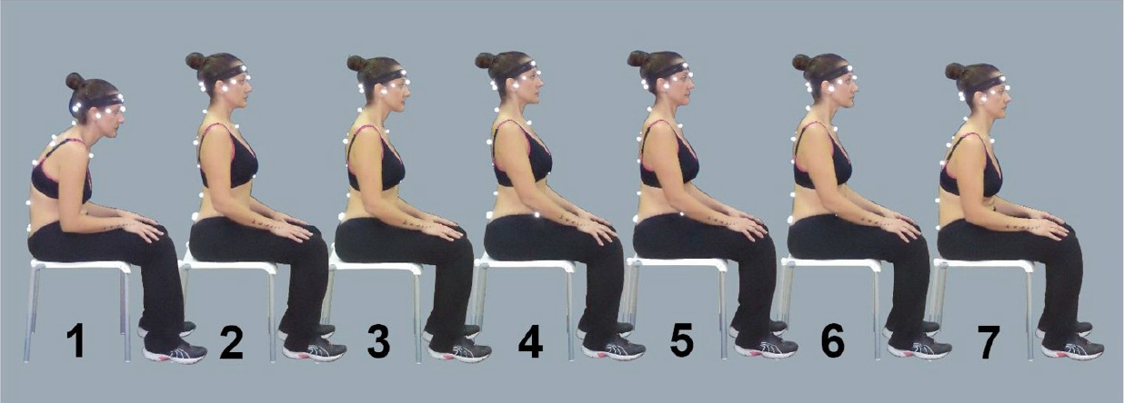 这篇综述对544名希腊物理治疗师进行了调查,旨在研究其对最优站姿和坐姿的看法,及其如何描述和量化姿势特征与最佳姿势。97.5%的物理治疗师选择了姿势2、4、5,其中,近一半人(41.4%)选择了姿势2——腰椎处于前凸状态,胸椎处于轻微后凸状态,骨盆、头部和肩部在一条直线上,下巴适度回收。这种姿势与人类脊柱的生理弯曲是相符的。