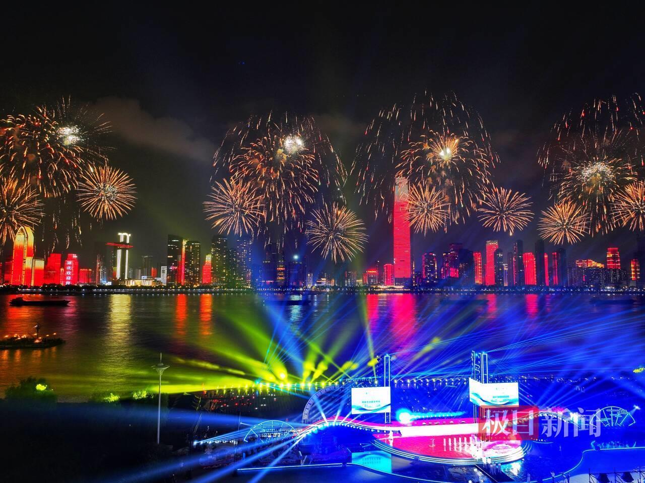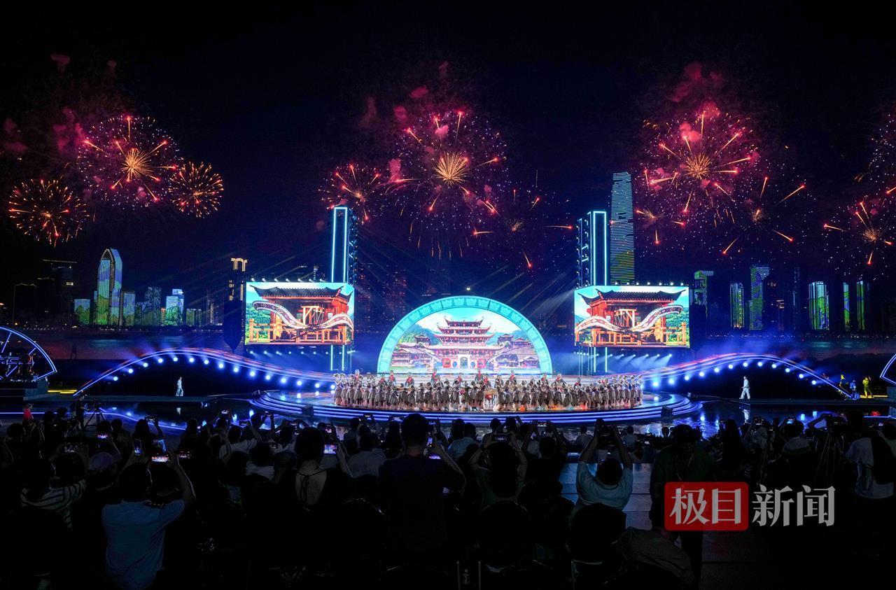 今晚,观众将欣赏到临江而建的舞台与壮阔江景完美融合的独特景观。在演出过程中,舞台表演将与烟火表演、两岸楼宇灯光秀、无人机编队表演等相互配合,共同为大家带来“江岸——江面——天际”三维交融的视觉体验。
