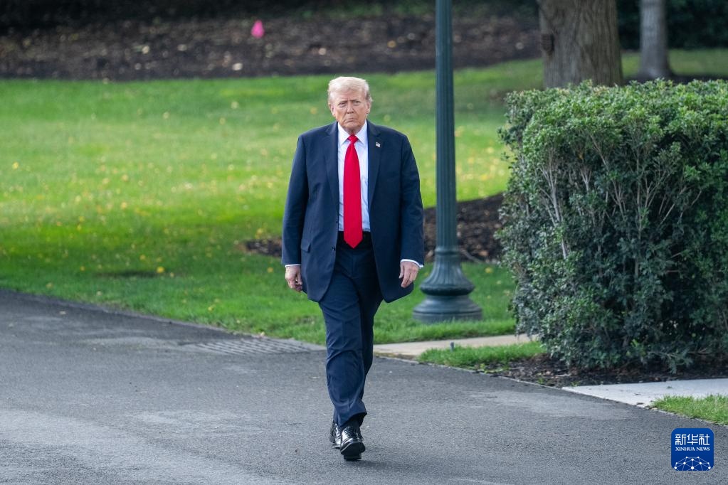 9月11日,在美国首都华盛顿白宫,美国总统特朗普走向记者准备回答提问。