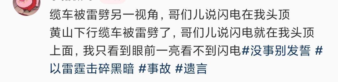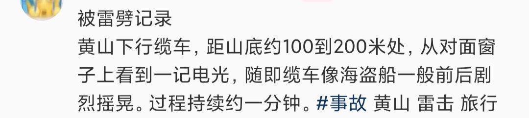 黄山景区相关部门工作人员则介绍,11日下午,黄山有短时雷阵雨,索道按照规范操作临时停车,没有发生缆车吊厢被雷电击中的情况。