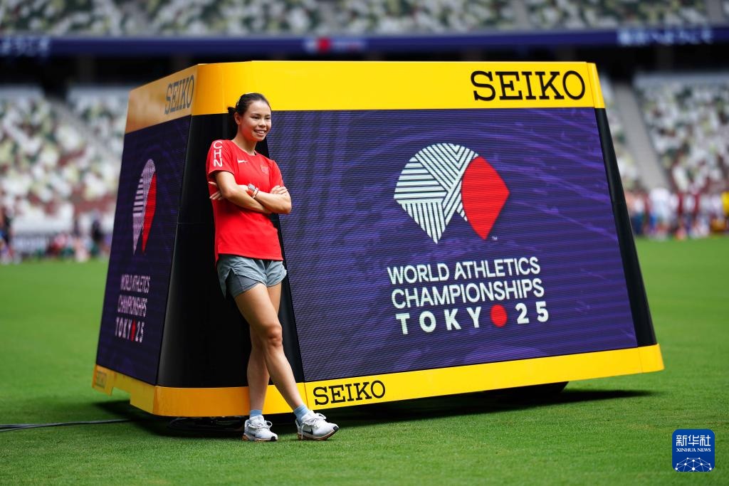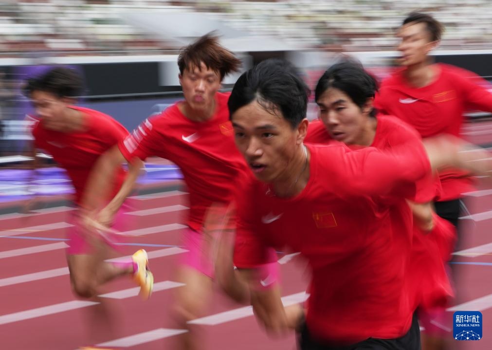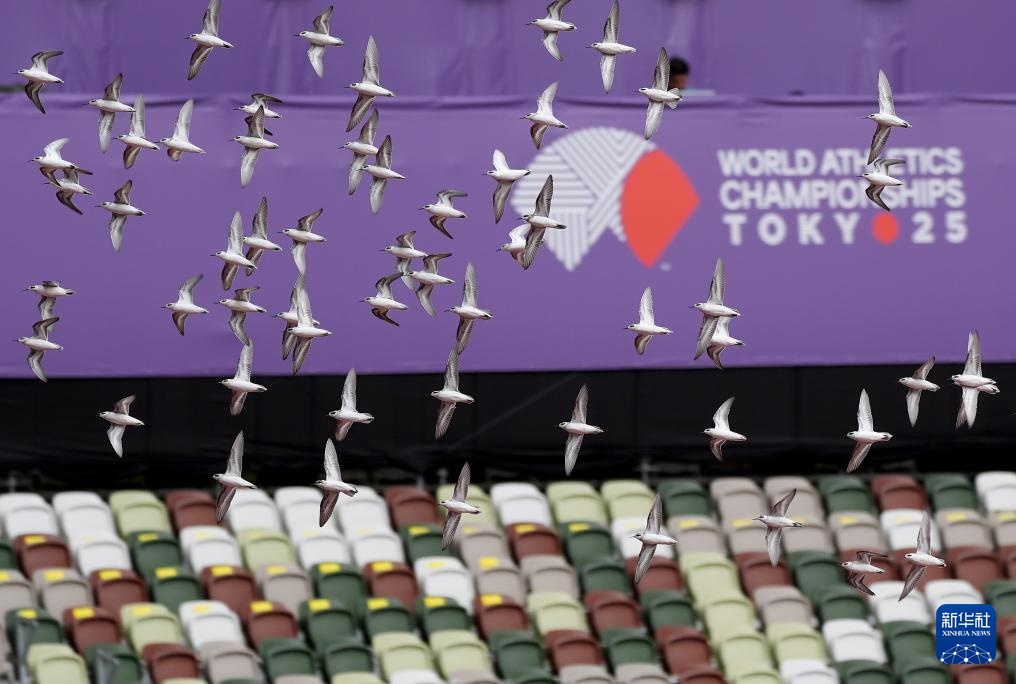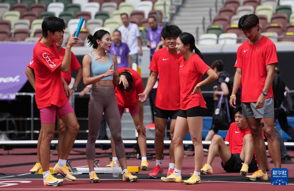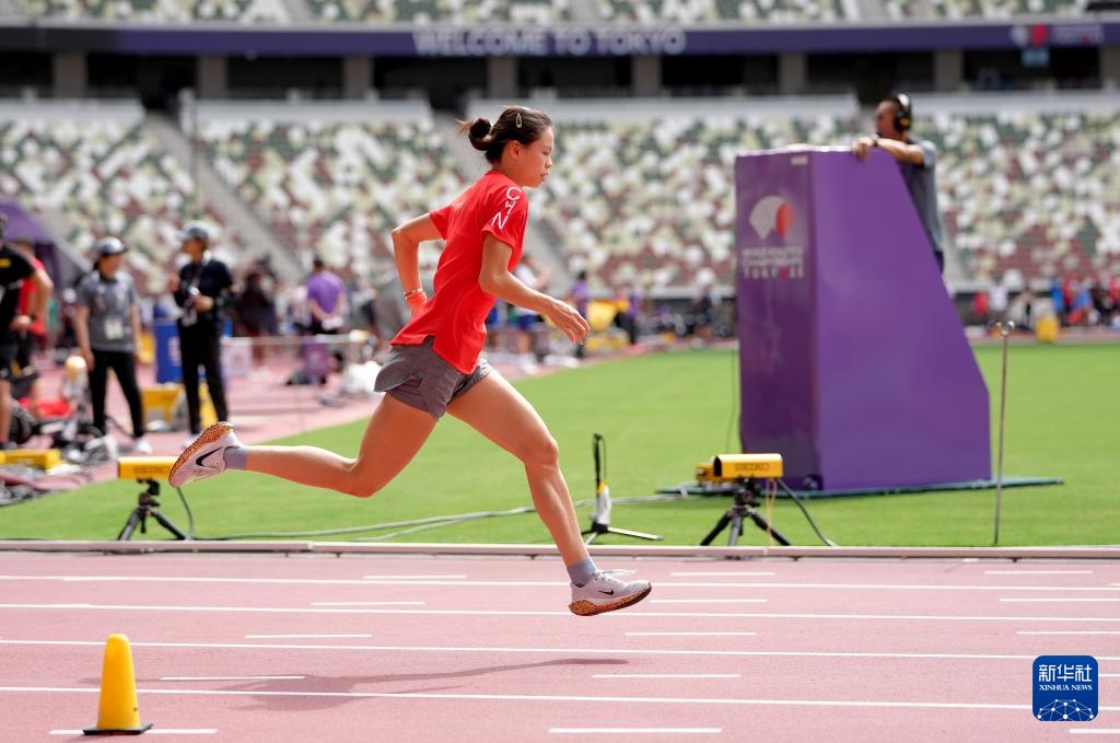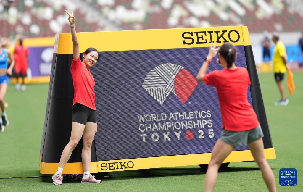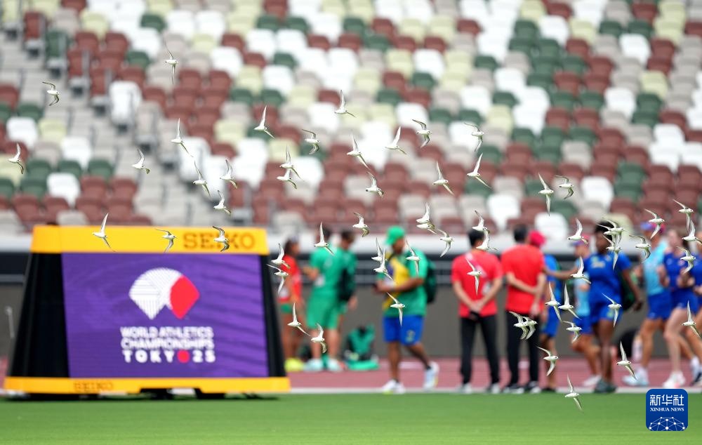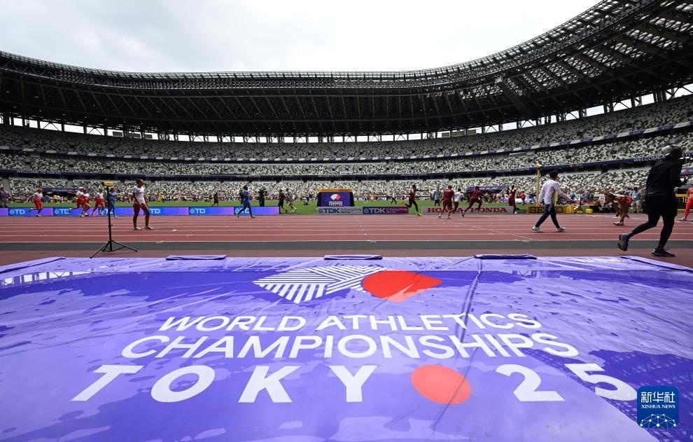 当日,2025年世界田径锦标赛参赛选手在日本东京国立竞技场进行比赛场地适应训练。