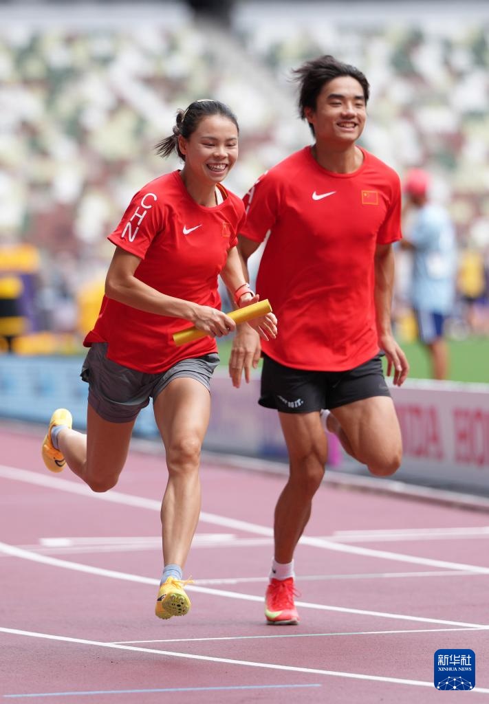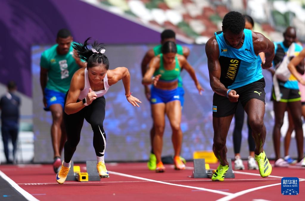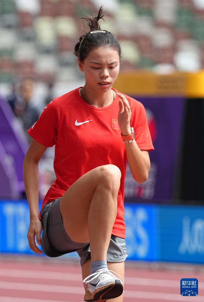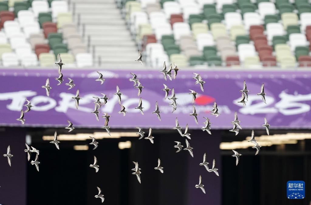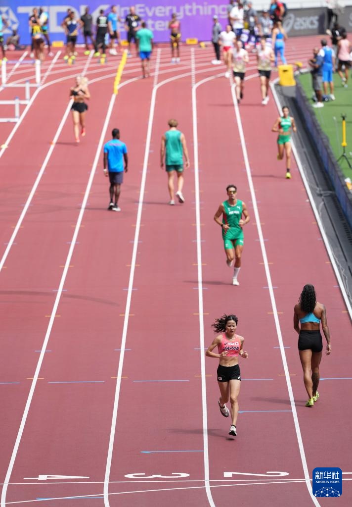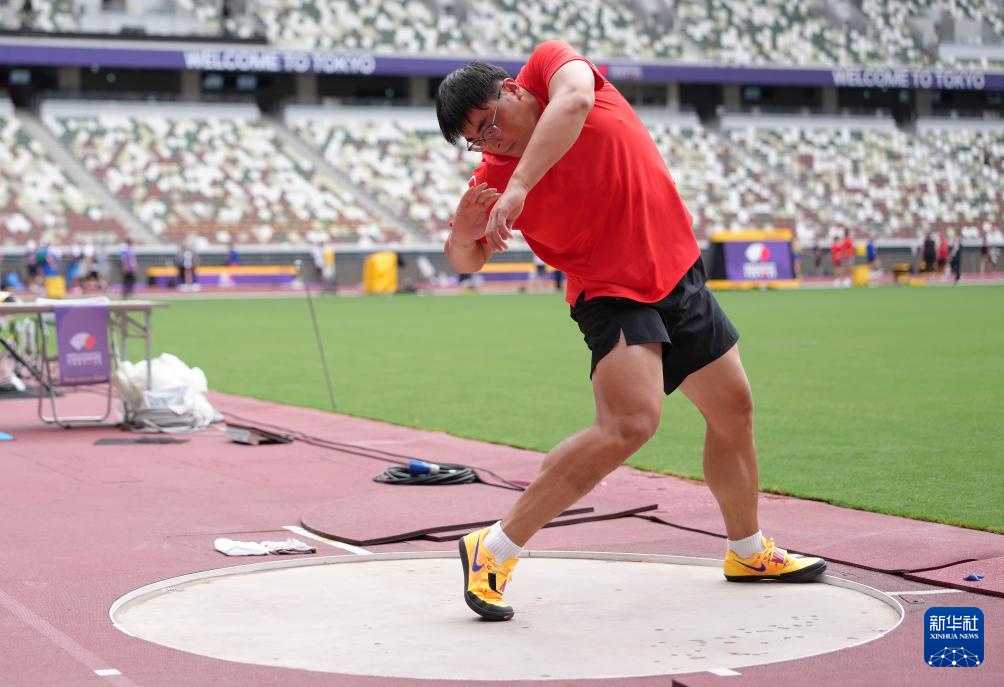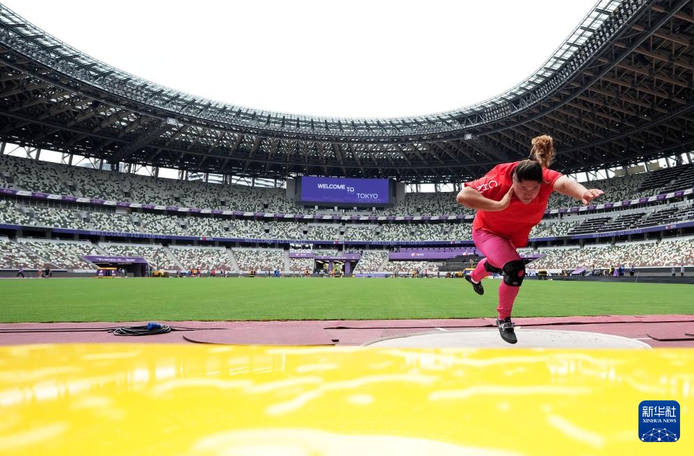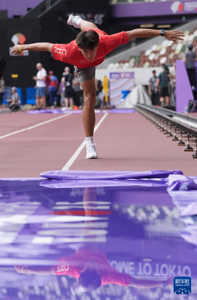 当日,2025年世界田径锦标赛参赛选手在日本东京国立竞技场进行比赛场地适应训练。