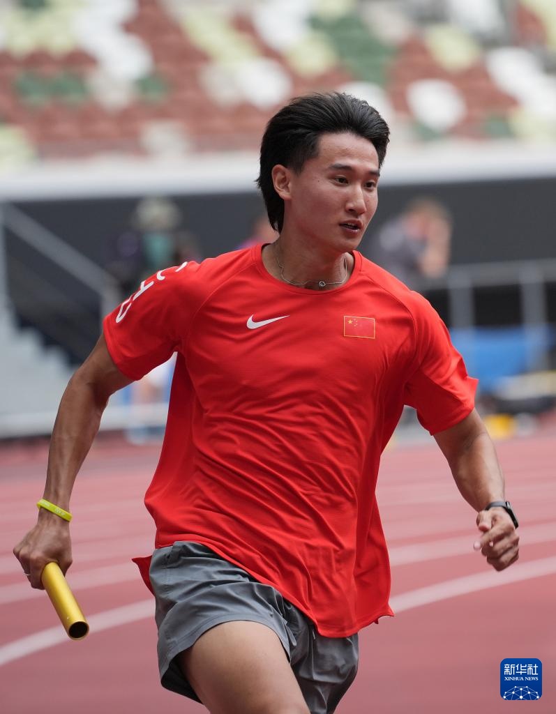 9月12日,中国男子4x400米接力选手鞠天淇在训练中。