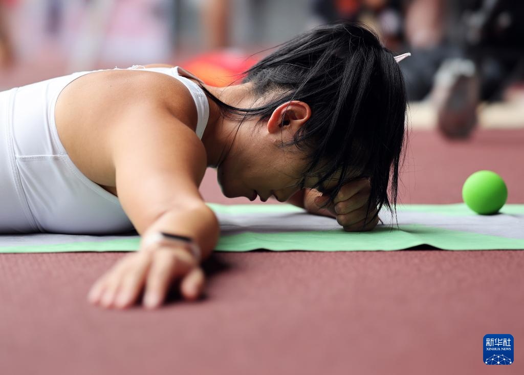 9月12日,中国女子铅球运动员张林茹在训练中。