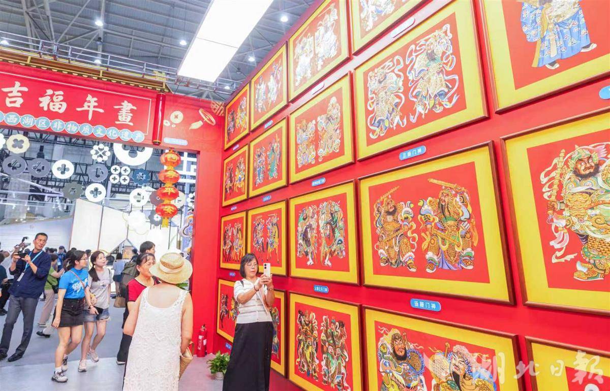 湖北日报讯(记者黄洁如、通讯员邱敏、林思雨)在2025中国文化旅游产业博览会A1馆国潮文创展区内,来自武汉市东西湖区慈惠街道的“汉吉福”文化企业展位前人头攒动。一位小朋友拉着妈妈的手,指着门神说:“这个将军好威风!”引来阵阵笑声。