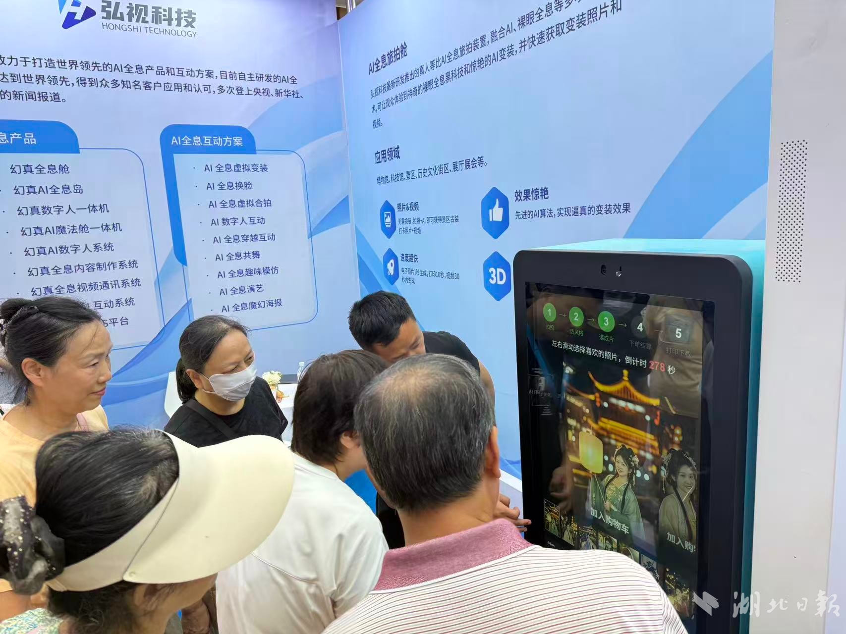 北京弘视科技的全息旅拍装置前,来自孝感的孙阿姨刚刚体验完AI换装,满意地拿着打印好的照片:“真实旅拍可能抢不到机位,或者光线不好,但AI拍照又快又美,还省去了PS。”