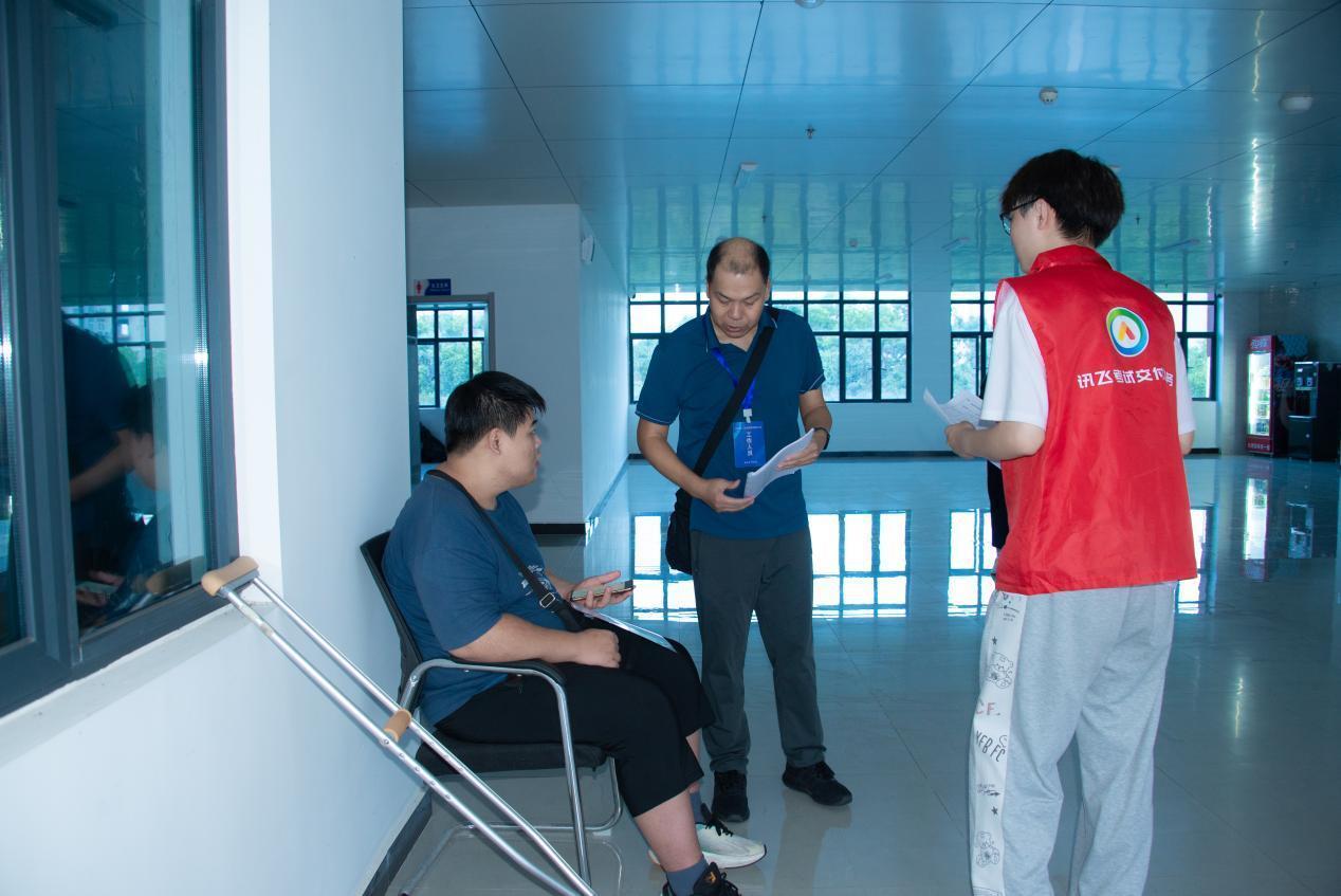 小宋介绍,工作人员最初提出安排两人搀扶他上下楼,但在得知他体重为240斤后,考虑到实际情况,便将他调整到了考点内有电梯的考场。