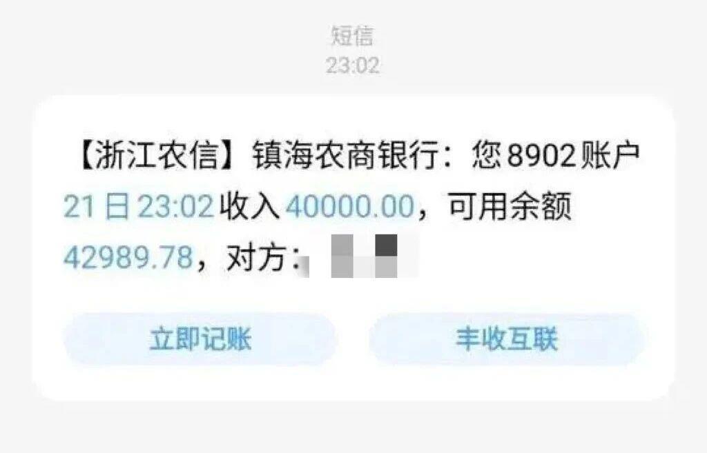 很快收到对方转入的全额货款