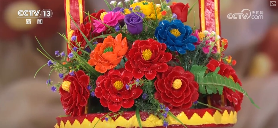 央视网消息:都说山西是“碳水大省”,山西不仅有刀削面、剔尖等种类繁多的面条,就连日常吃的馍馍,也就是馒头,也能做出花样来。这个“花篮”来自山西霍州的年馍。山西的碳水很诱人,可不仅仅是滋味,这颜值也很在线。用面食来做鲜花也一样栩栩如生。