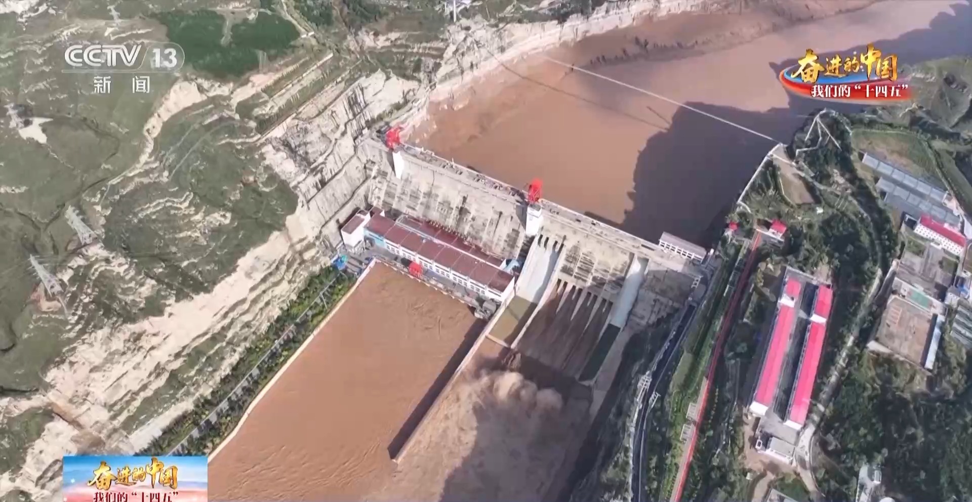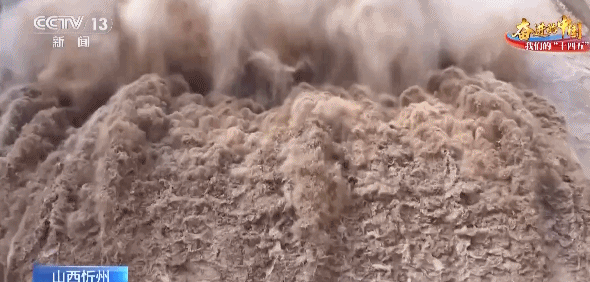 万家寨水利枢纽排沙的8个底孔已经全部打开,黄河水通过25米的落差,携带着泥沙奔涌冲出底孔。