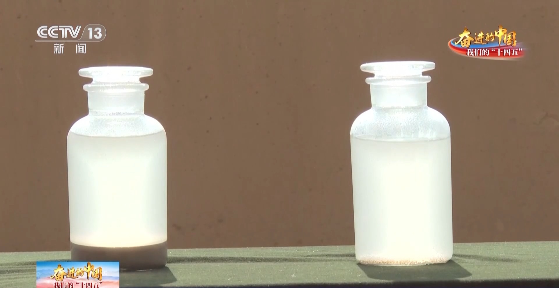 △ 从下游取水,经过一天沉淀的烧杯。左为排沙期取水,右为平时发电期取水。