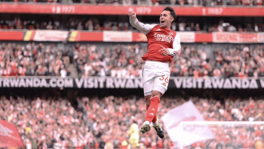 苏比门迪在比赛中庆祝得分。图片来自阿森纳俱乐部官网