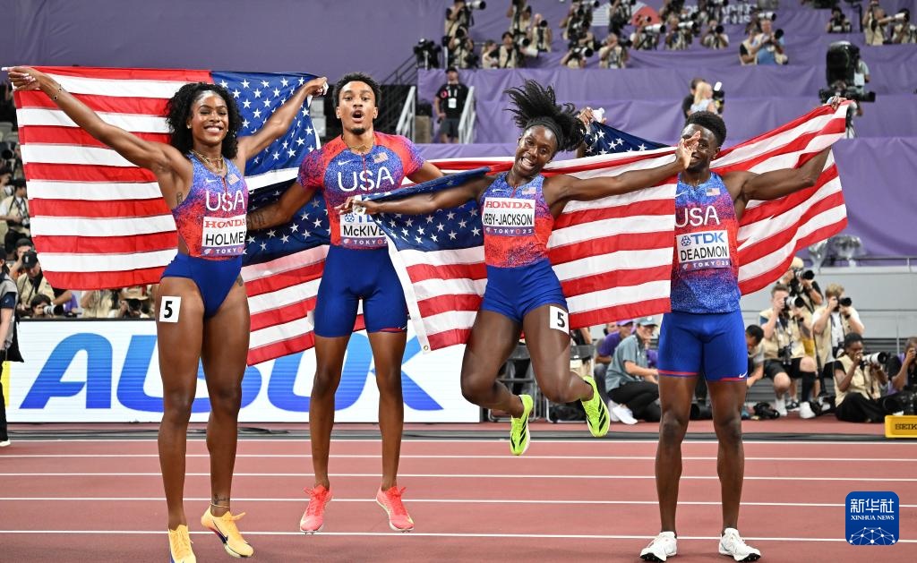 当日,2025年世界田径锦标赛混合4x400米接力决赛在日本东京举行。