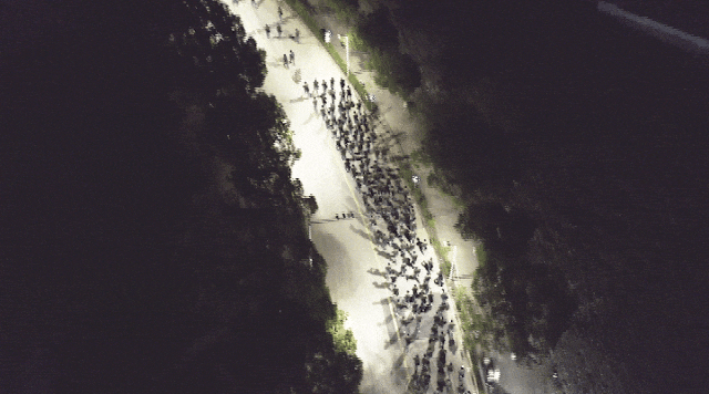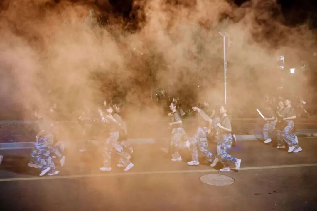 距离不等的新生夜间行军拉练
